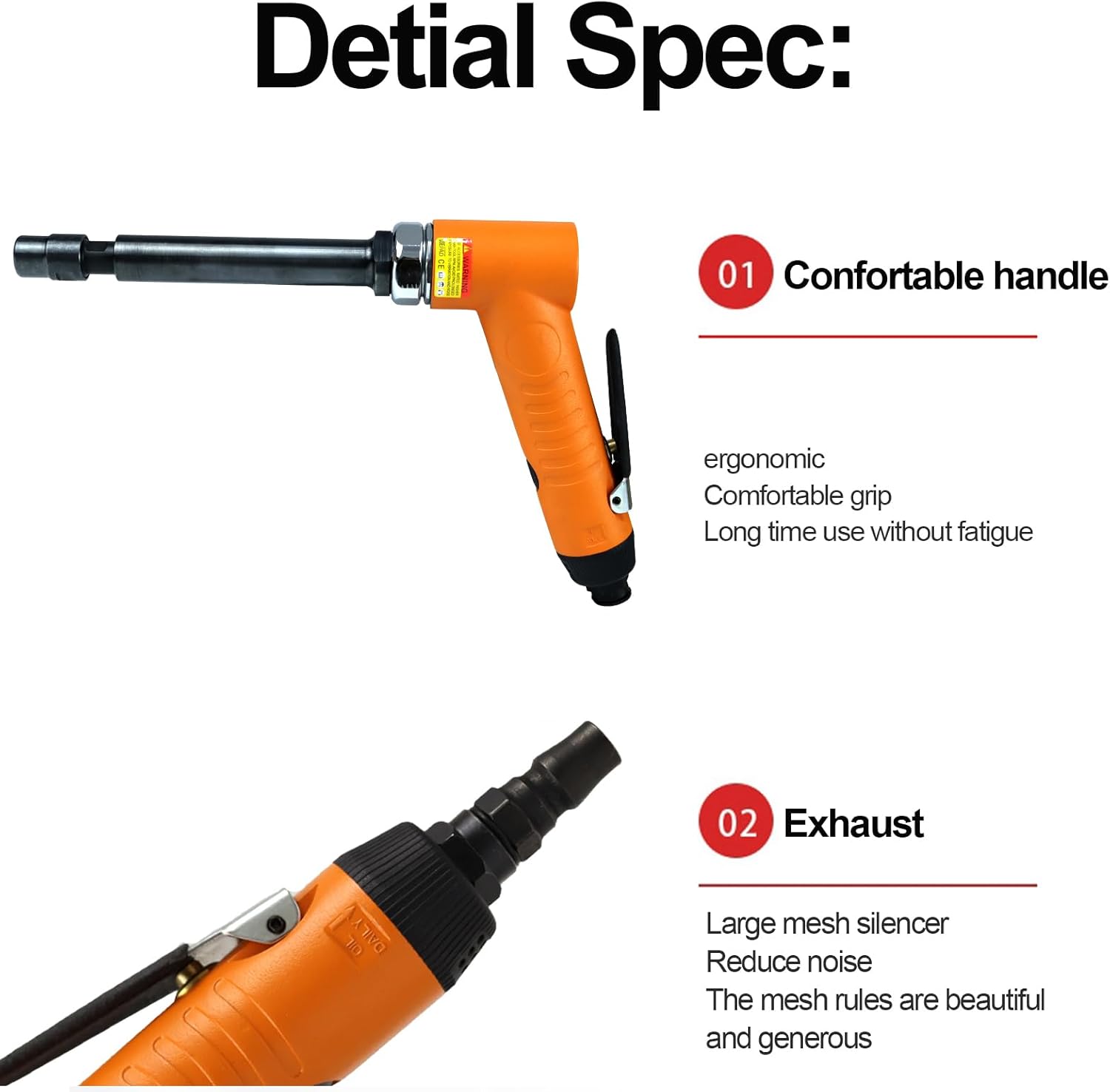 | Included Components | 1 x Air inlet Plug, 1 x Angle Die Grinder 110degree long extended with 1/4" Collet, 1 x1/8"(3mm) Collet, 2 x Hand Wrenches |