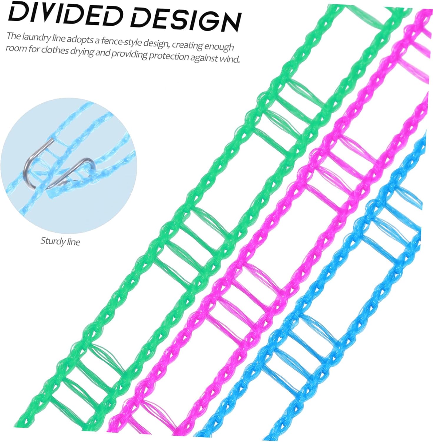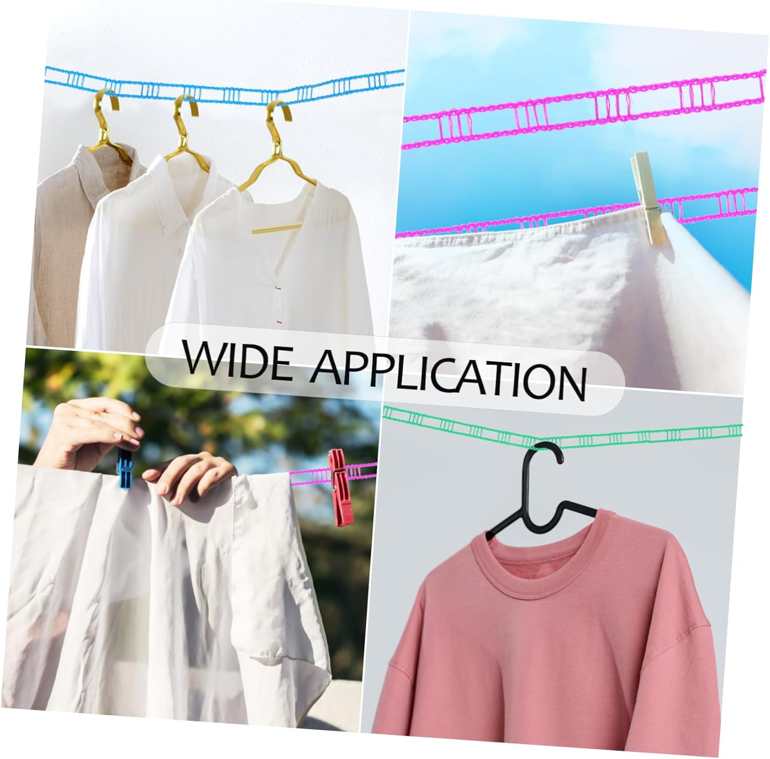Package Include 15 x rolls of clotheslines Features - Easy to use: The divided design of this clothes line makes your clothes stay in put even in windy days, ensuring convenience and practicality during outdoor travel portable clothes line. -Size:17.00X15.00X2.00cm/6.68X5.89X0.79in outdoor clothes line -Color:Assorted Color clothesline for travel - Outdoor supplies: Whether you are camping or hiking, this laundry line provides functions more than clothes hanging, also includes setting sunshades camping clothesline. - Simple installation: This clothesline is easy to install, with tow hooks included, no need for drilling or other tools, time-saving and space-saving travel clothesline. - High-strength line: Made of high-strength nylon, the set of travel clothesline is designed to be and reliable, ensuring use portable clothesline. -Material:Nylon travel washing line - Enough length: Our clothesline is long enough for you to the length to fit your specific needs, whether at balconies or yards laundry line travel.Goods Descriptionoutdoors clothes line This set of clothes line is versatile and creative adopting a fence-style design, which can prevent falling and sliding during a windy day.outdoor clothesline This clothesline set is an essential item for outdoor travel.portable clotheslines for outside Made from sturdy nylon materials, these clothes lines are heavy duty and not easy to break, more reliable for long-term use
