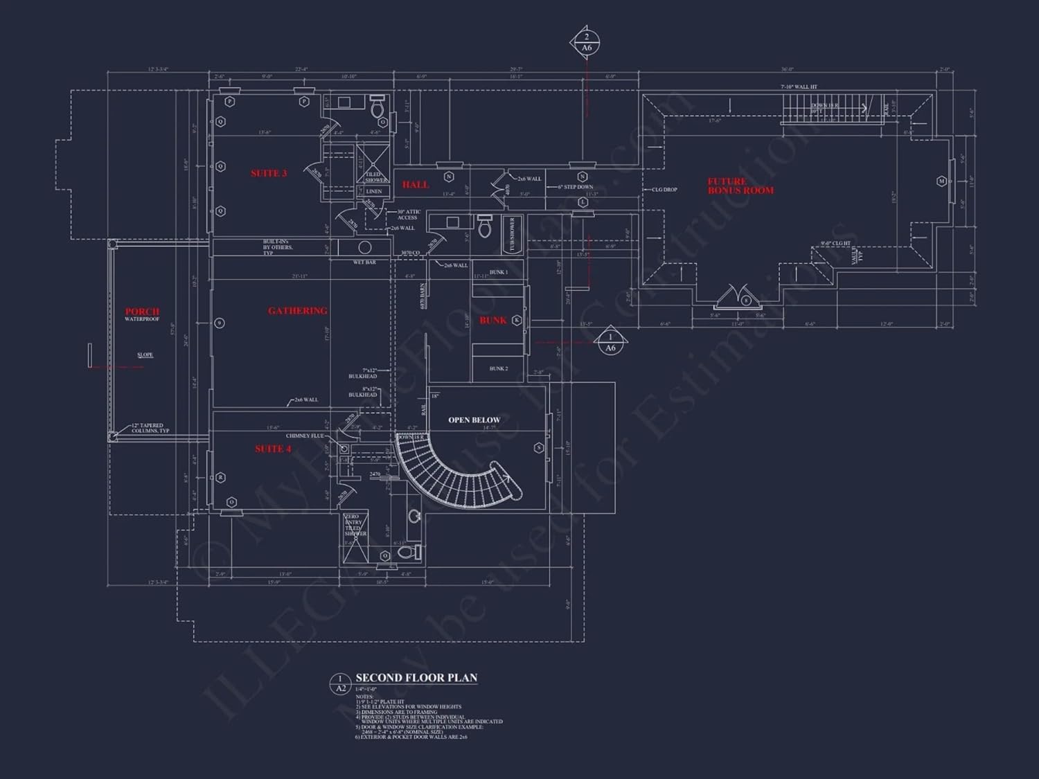Width: 106′-5″Depth: 66′-8″Htd SF: 4,799Unhtd SF: 2,534Elegant 2-Story House Plan with Mediterranean & Tuscan CharmDiscover this stunning Mediterranean-style house plan with 4,799 heated sq. ft., 2 stories, luxurious living spaces, and bonus rooms—includes CAD architecture designs and more.This Mediterranean house plan offers a perfect mix of elegance and modern functionality. Designed for upscale living, it combines architectural charm with a smart layout tailored for families and entertainers alike.Key Features of the Home PlanLiving Areas - Heated & UnheatedHeated area: 4,799 sq. ft. spread over two luxurious stories.Unheated extras: 2,534 sq. ft. including covered porches, garage, bonus space, terrace, and balcony—totaling 7,333 sq. ft. under roof.Bedrooms & Bathrooms4 spacious bedrooms, including a grand first-floor Owner Suite with walk-in closet for maximum privacy and comfort.5+ bathrooms, including ensuite baths for each bedroom and powder rooms conveniently placed for guests.Interior HighlightsVaulted ceilings for dramatic volume and architectural interest.Open floor plan connecting the kitchen, dining, and family room areas. Explore open layouts.Gourmet kitchen with island, butler's pantry, and walk-in pantry—ideal for hosting. See kitchen island plans.Wine room and formal study add luxury and flexibility.Bonus room upstairs that can serve as a game room, second office, or even a fifth bedroom.Garage & Storage DetailsGarage Bays: 3-car angled garage for side access and driveway flexibility.Garage Type: Attached with elegant Mediterranean rooflines.Storage: Mudroom cubbies, attic space, walk-in closets, and under-stair storage areas.Outdoor Living FeaturesCovered front and rear porches for entertaining and relaxing.Elegant terrace and second-floor balcony offer scenic views and refined outdoor experiences. View balcony designs.Stucco exterior with Mediterranean styling, arches