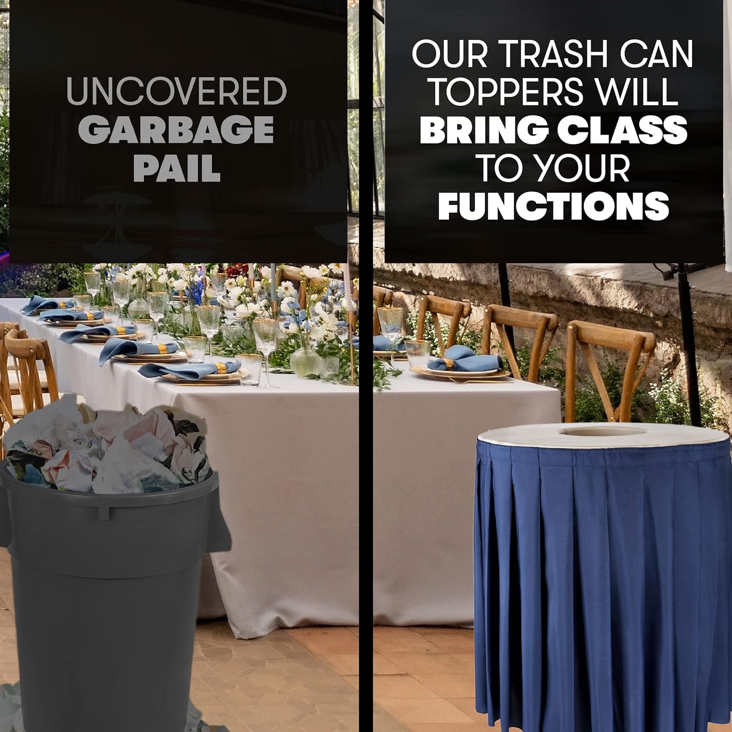 | Item Type Name | Black Trash Can Topper Cover With Solid Pleated Skirt | Designed to Fit 44 & 55 Gallon Trash Cans | Elegant Party Supplies for Weddings, Banquets, Birthday Parties & More (Black Top Black Skirt) 2-Pack |
