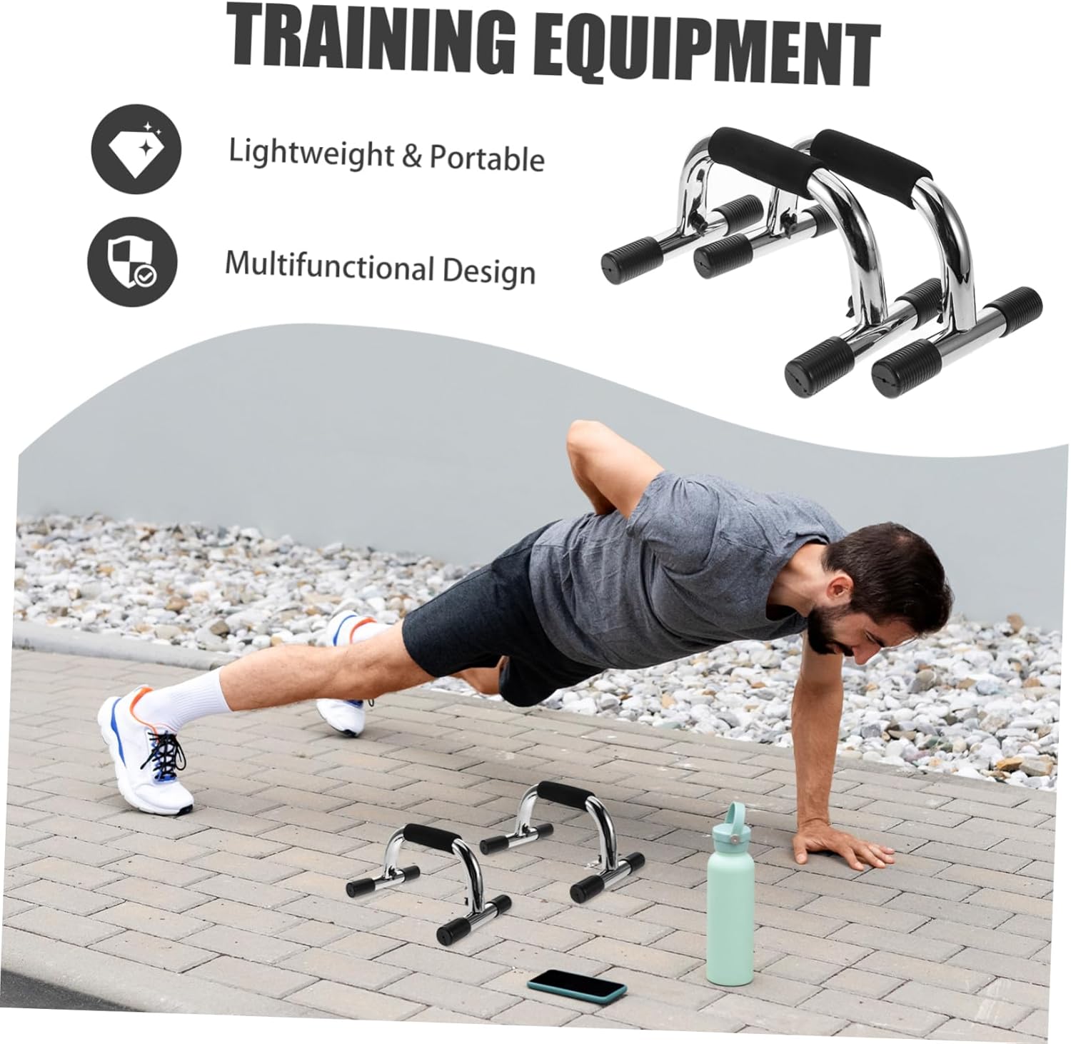 Package Include 1 pair of push-up stands Features -Size:25.00X17.00X9.00cm/9.82X6.68X3.54in push up bars -Easy indoor setup: ideal for indoor use, providing a convenient and efficient stay fit without leaving the house fitness equipment -Essential for home fitness: for home fitness enthusiasts, helping to build a welltoned and strong physique with regular use push up bars for floor -Multifunctional design: allows for a diverse range of exercises, making it a versatile tool for comprehensive home workouts calisthenics parallettes -Height adjustable: designed to accommodate users of various heights, ensuring a comfortable and workout for all strength training -Material:Carbon Steel exercise equipment for home - steel frame: constructed with a steel L shape design, ensuring stability and longevity for intense workouts push up grips for floor -Color:Silver sit up exercise equipmentGoods Descriptionpush up bars Its ABS construction and anti-slip grips provide a and perform push-ups and other strength training exercises.handstand bars for use in small spaces, this board helps you stay fit and healthy, whether you're or traveling.core workout equipment The push up board is an ideal present for fitness enthusiasts, offering a portable and foldable for home workouts.gym equipment for home Incorporate it into your daily routine to achieve your fitness goals