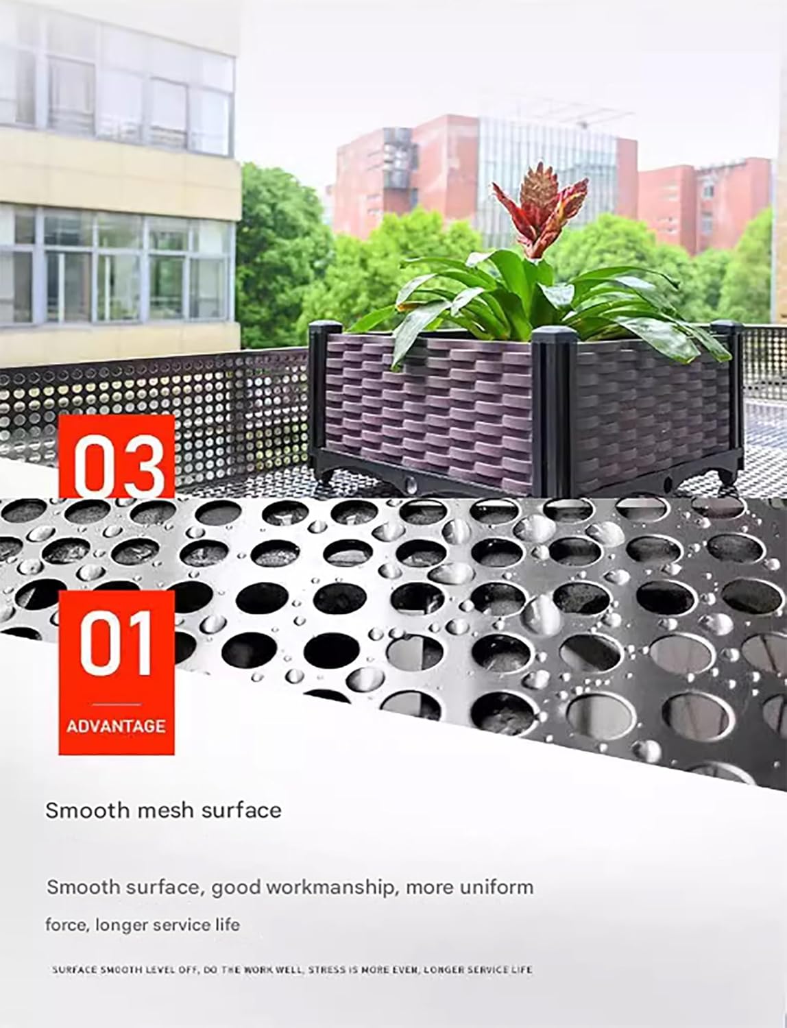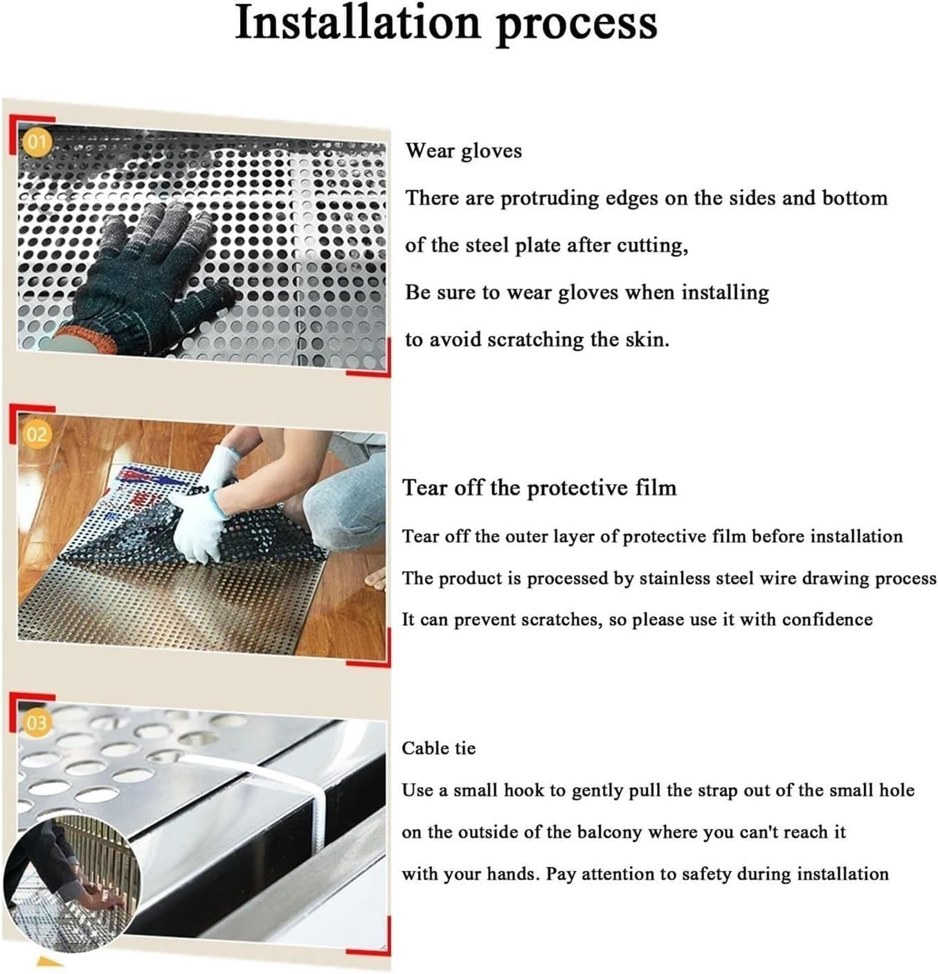 Enhance your outdoor space with our versatile Stainless Steel Perforated Sheet, perfect for balconies, gardens, and patios. This protective net is designed to meet the needs of flower enthusiasts and pet owners alike, offering a safe and stylish solution for growing plants and keeping your furry friends secure. With excellent ventilation and lighting, your plants will thrive in a well-optimized environment. The robust design ensures that you can dry household items like clothes and toys without the fear of them falling off. Its strong bearing capacity and deformation-resistant properties make it an ideal home assistant for organizing your space. By installing this balcony protection net, you provide a safer area for your children to play, giving you peace of mind while they enjoy the outdoors. Our balcony pads serve as a perfect base for potted plants, shoes, and even cat cages, helping you decorate and maximize your space efficiently. **Product Specifications:** - **Name:** Stainless Steel Perforated Sheet/Balcony Protective Net - **Material:** 304 Stainless Steel - **Color:** Silver - **Thickness:** 0.8mm - **Hole Diameter:** 10mm - **Hole Distance:** 10mm - **Functionality:** Protection, Safety, Anti-fall, Leakproof, Anti-theft, Decoration - **Applicable Scenes:** Balcony, Railing, Stairs, Garden, Window, Courtyard, Yard, Patio **Packing List:** - 1x Protective Net - (Includes accessories: cable ties) **Please Note:** - Manual measurement may result in a normal error of about 1-2cm. - Our product showcases stainless steel mesh; other items are for display purposes only.