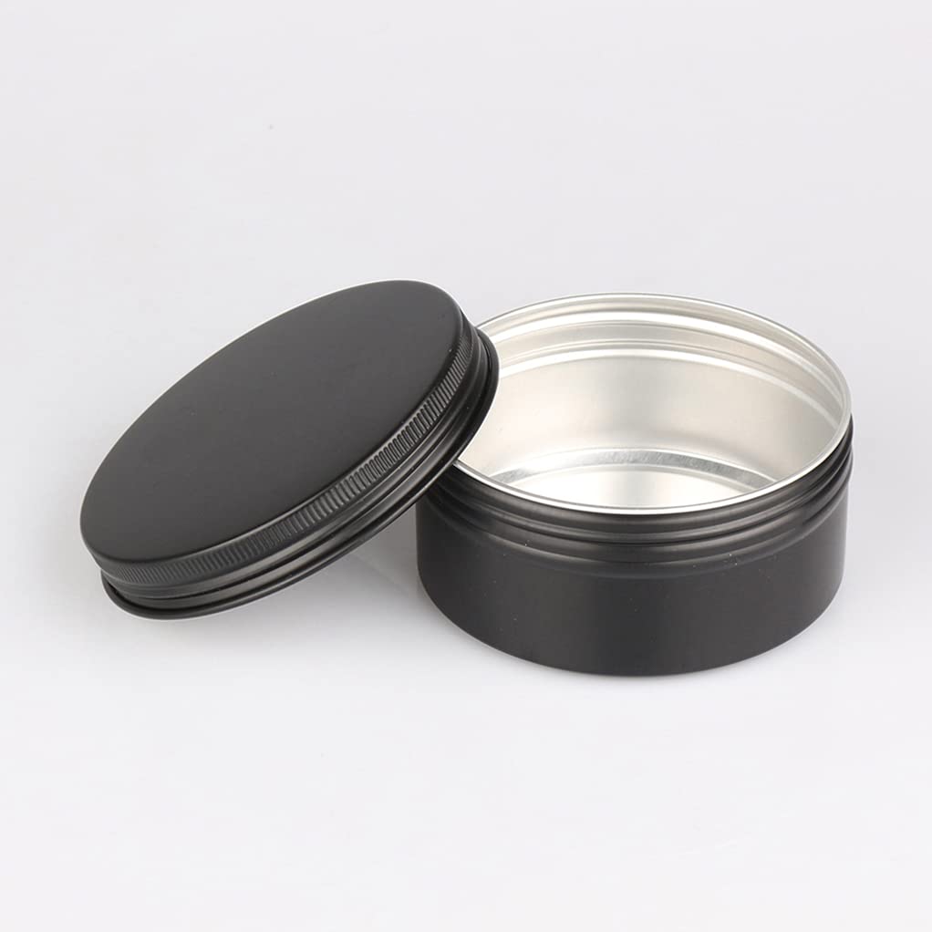 Description: These tins are made of high quality aluminum to protect your goods from excessive sunlight and high temperatures. Aluminum tins with excellent craftsmanship, light weight and durability, does not take up too much luggage space. Ideal for homemade lip balms, ointments and creams. Can also be used to store crafts, mini candles, cosmetics, herbs, nail art, hooks, beads, buttons, ointments, etc. Specifications: - Material: Aluminum - Color: Matte Black Size of tins: 15ml Ø 41 mm x 17.4 mm Height 30ml Ø 50 mm x 20 mm Height 50ml Ø 57 mm x 27 mm Height 60ml Ø 68 mm x 25 mm Height 80ml Ø 68 mm x 35 mm Height 100ml Ø 83 mm x 28 mm Height 150ml Ø 83 mm x 38 mm Height Size of Labels: 15ml, 30ml tins come with Ø 35mm labels 50ml tins come with Ø 40mm labels 60ml, 80ml tins come with Ø 50mm labels 100ml, 150ml tins come with Ø 70mm labels Package includes: 50 pieces empty aluminum tin jars 50 pieces labels 3 pieces spoons