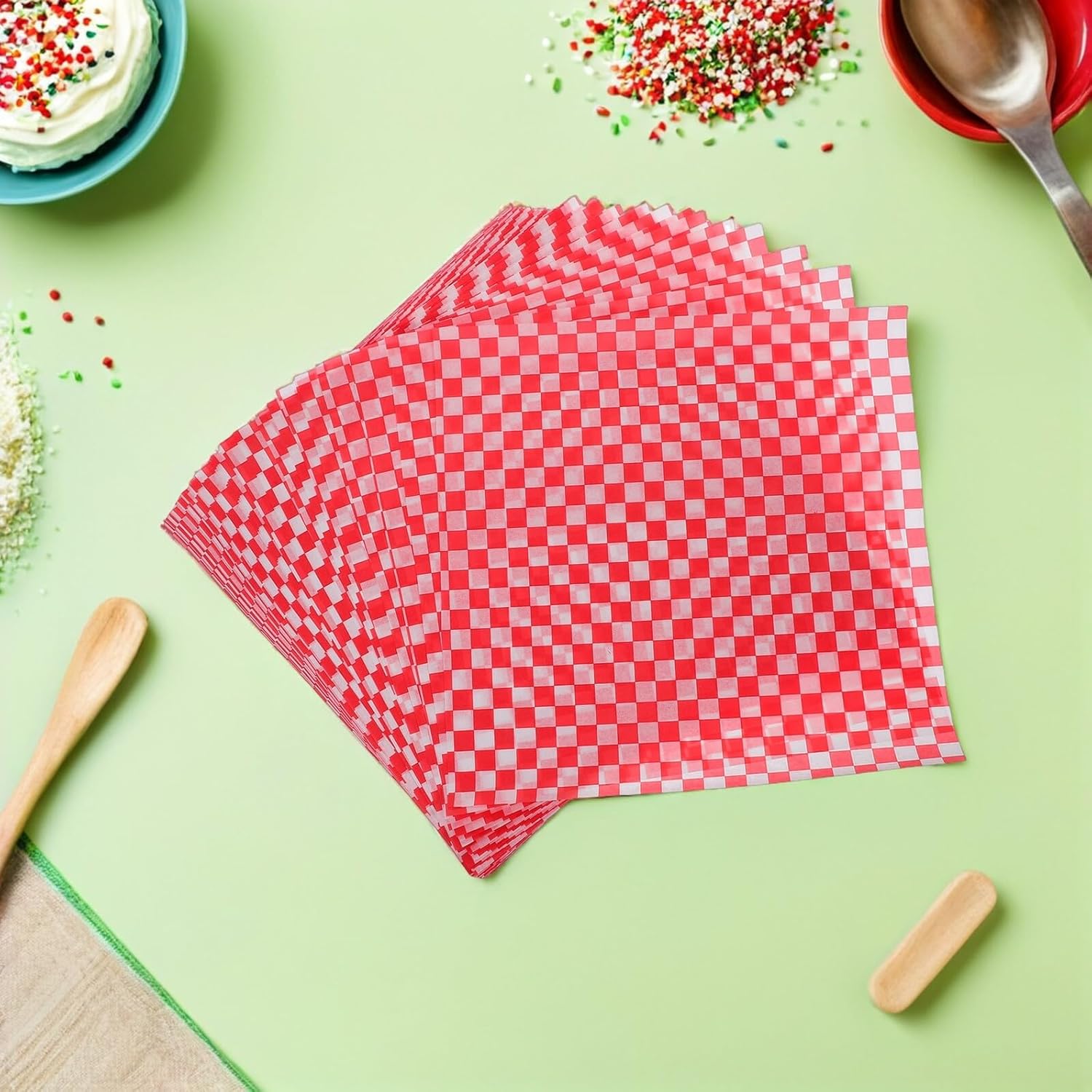 Package List 500 x sheet of baking greaseproof paper Features -Disposable convenience: enjoy colored parchment paper and sandwich wraps paper for effortless cleanup, creating more enjoyable dining and baking experiences without lingering dishwashing chores -Material:Paper -Size:30.00X30.00X0.01cm/11.79X11.79X0.00in -Product Info: Baking parchment paper -Multipurpose use: food basket paper liners can serve as soap wrapping paper or wrapping paper sheets for festival occasions, offering both practicality and an appealing look for food and present packaging greaseproof paper -Oil barrier: our baking greaseproof paper sheets provide excellent greaseproof properties, ensuring burgers, pastries, and sandwiches always stay fresh without greasy buildup in the kitchen burger press paper -Heatproof design: greaseproof paper roll withstands high temperatures, making baking cookies paper and parchment paper sheets safe for oven, air fryer, or grilling uses while maintaining food quality food basket liners -Color:RedGoods Descriptionfood wraps paper The kitchen oil-absorbing paper doubles as soap wrapping paper or festival wrapping paper sheets, keeping items tidy and enhancing presentation in home or commercial settings.bread parchment paper Made with high-grade parchment baking paper, these food wraps paper sheets are perfect for lining grilling racks or basket liners for burgers and fries, minimizing oil residue and maintaining crisp textures