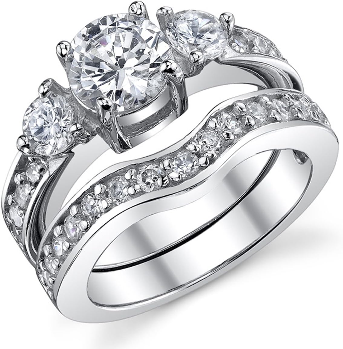 Fabulous Sterling Silver 925 engagement ring with Cubic Zirconia. The center stone is a .75 carat round and its surrounded with pave set Cubic Zirconia on the Shank. The ring is rhodium plated as well and comes with a Complimentary Ring Box!!