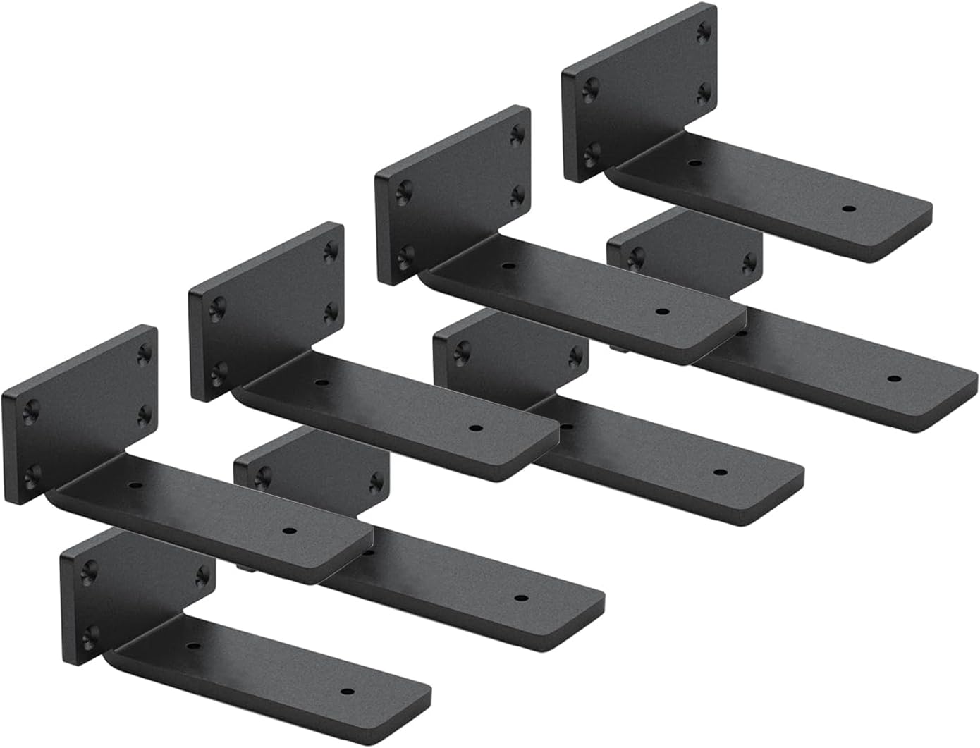 Key Features: Sturdy and Reliable: Crafted from premium-grade steel, these floating shelf brackets are built to last. Each pair of brackets can hold maximum 150lbs. They offer unparalleled stability and can easily handle various loads, ensuring your belongings are safely secured. Space-Saving Design: Our 8-Pack Bracket Set allows you to maximize space efficiency by utilizing vertical storage solutions. Transform any room, garage, or workspace into a well-organized area with ease. Multi-Purpose Use: These iron shelf brackets are incredibly versatile for a wide range of applications. From creating custom shelving units to supporting heavy items like shelves, boards, these brackets are up for the task. Easy Installation: Installing our heavy duty L bracket set is a breeze! Each pack comes with all the necessary hardware, making it simple to set up without the need for professional help. Save time while achieving professional-grade results. Sleek and Elegant: With a sleek black power coat finish, these brackets for shelves not only offer exceptional functionality but also add a touch of sophistication to any space. They blend seamlessly with various interior styles, complementing your decor effortlessly. Specifications: ✧Material: Iron ✧Color: Black ✧Quantity: 8 Brackets per pack ✧Dimension:6 inch, 8 inch, 10 inch,12inch Package Contents: ✧8 x Premium Shelf Brackets ✧Screws and Anchors for installation Transform your Space Today: Revolutionize the way you organize your living or working area with our floating. Whether you're tackling a home improvement project, optimizing your storage space, or creating a custom shelving system, our heavy duty shelf brackets provide the ideal foundation for your endeavors. Upgrade your space with these reliable, durable, and stylish brackets available exclusively on Amazon!