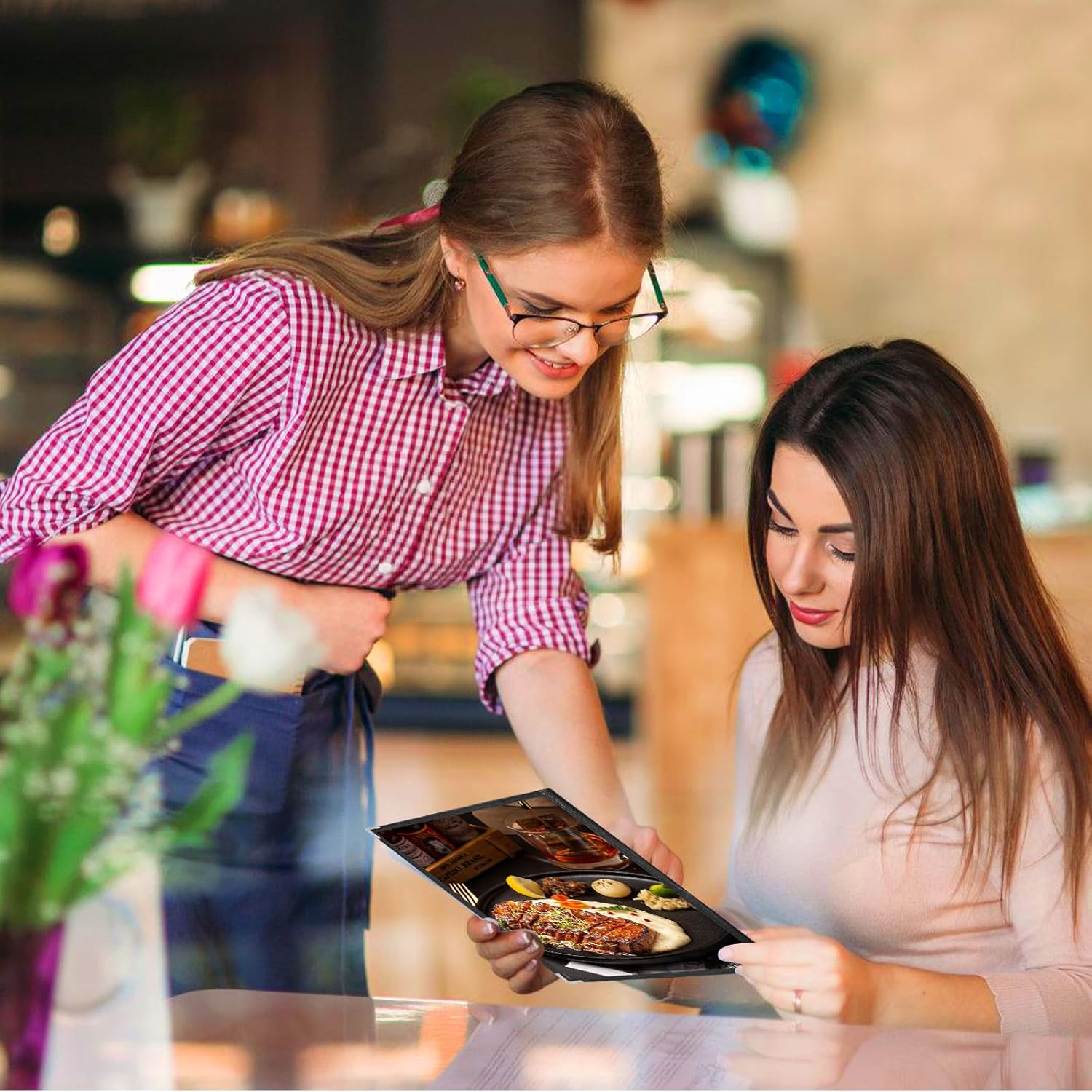 Introducing the 8PCS menu covers, meticulously designed to elevate your dining experience. Our menu covers are crafted with precision, offering a sleek and professional presentation for your menu items. The menu covers measures 8.5 x 11 inches, providing ample space to showcase your offerings in a clear and organized manner. The 4 Page 8 View layout of the menu covers allows for easy navigation and browsing for your customers.Ideal for a morning menu or homeschooling purposes, these covers are tailored to fit A4 size paper, ensuring compatibility and convenience. Whether you’re a restaurant owner looking to upgrade your menu presentation or simply seeking a polished menu book for personal uses, our black menu covers are the perfect choice.