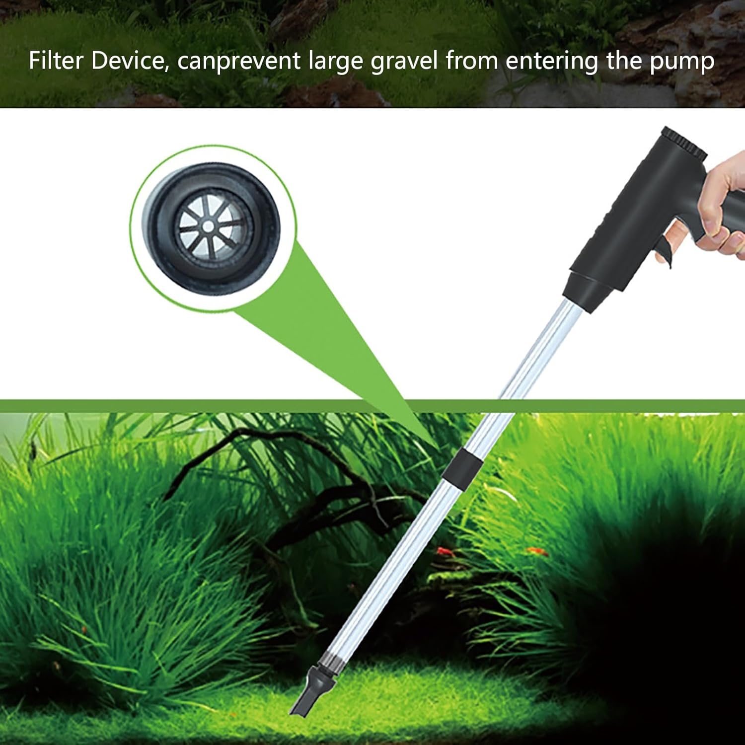 Introducing the ultimate fish tank cleaner vacuum, designed to make aquarium cleaning tools a breezeThis advanced aquarium water changer is equipped, flow regulating feature that ensures an ultra-low water level while changing water and sand washingWith its powerful vacuum, it effectively cleans gravel and keeps your fish tank looking its bestDon't miss out on this essential aquarium accessories that includes a fish tank vacuum gravel cleaner and siphon pump for fish tankSay goodbye to cleaning struggles and hello to efficient aquarium maintenance with this syphon pumpWhether you're a seasoned aquarist or a beginner, this fish tank gravel cleaner vacuum is your go-to aquarium siphon for hassle-free cleaningProduct Specification:Material: PlasticHose Length: 6.5ft (2m)Precaution: Manual measurement has been used, there may be some reasonable errorDue to factors such as display equipment and shooting environment, the color of the item may be slightly different from the picture, which is a normal phenomenon, please refer to the actual item