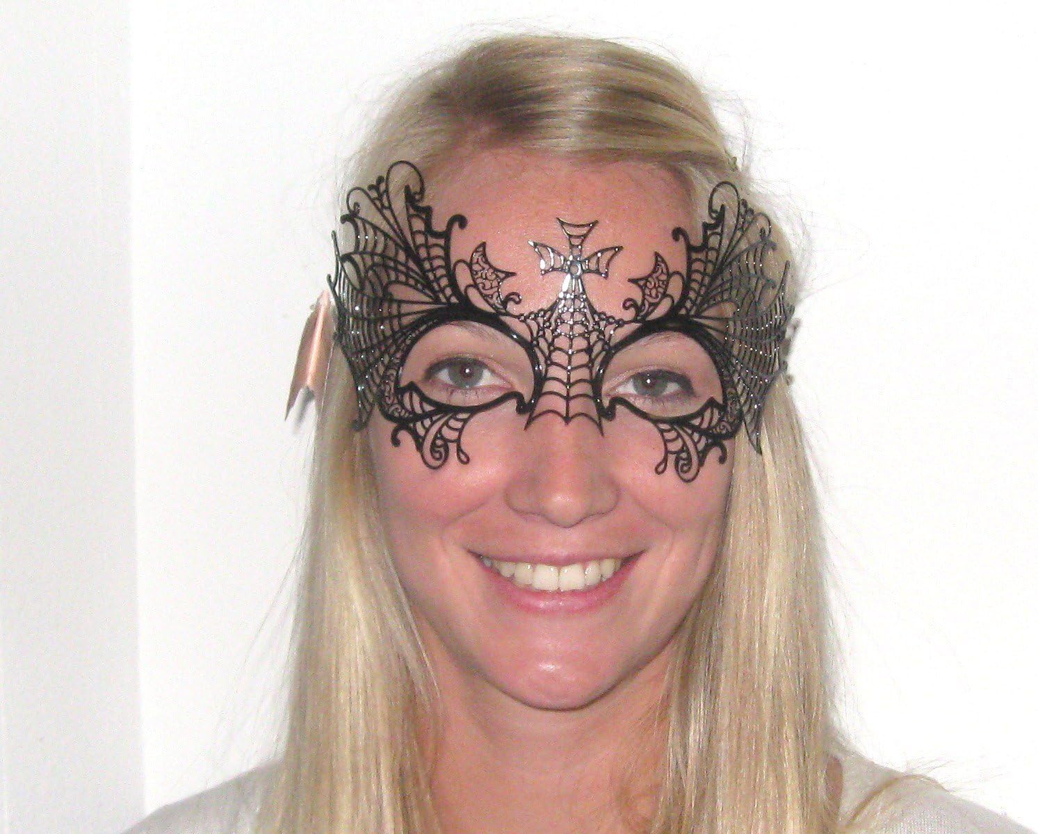 BEAUTIFUL FEATURES OF VENETIAN MASQUERADE MASK: - Black laser cut metal HALLOWEEN BAT mask. - This light weight delicate mask can be worn as it has black satin ribbons. - This mask art was selected personally from the artist and has tags from the artists studio guaranteeing the AUTHENTICITY. - The Venetian Mask is 4 1/2 inches high by 7 1/2 inches wide . - This would make a wonderful piece of art for the serious mask or costume collector. - Place in a shadow box after your HALLOWEEN costume ball for your art collection.