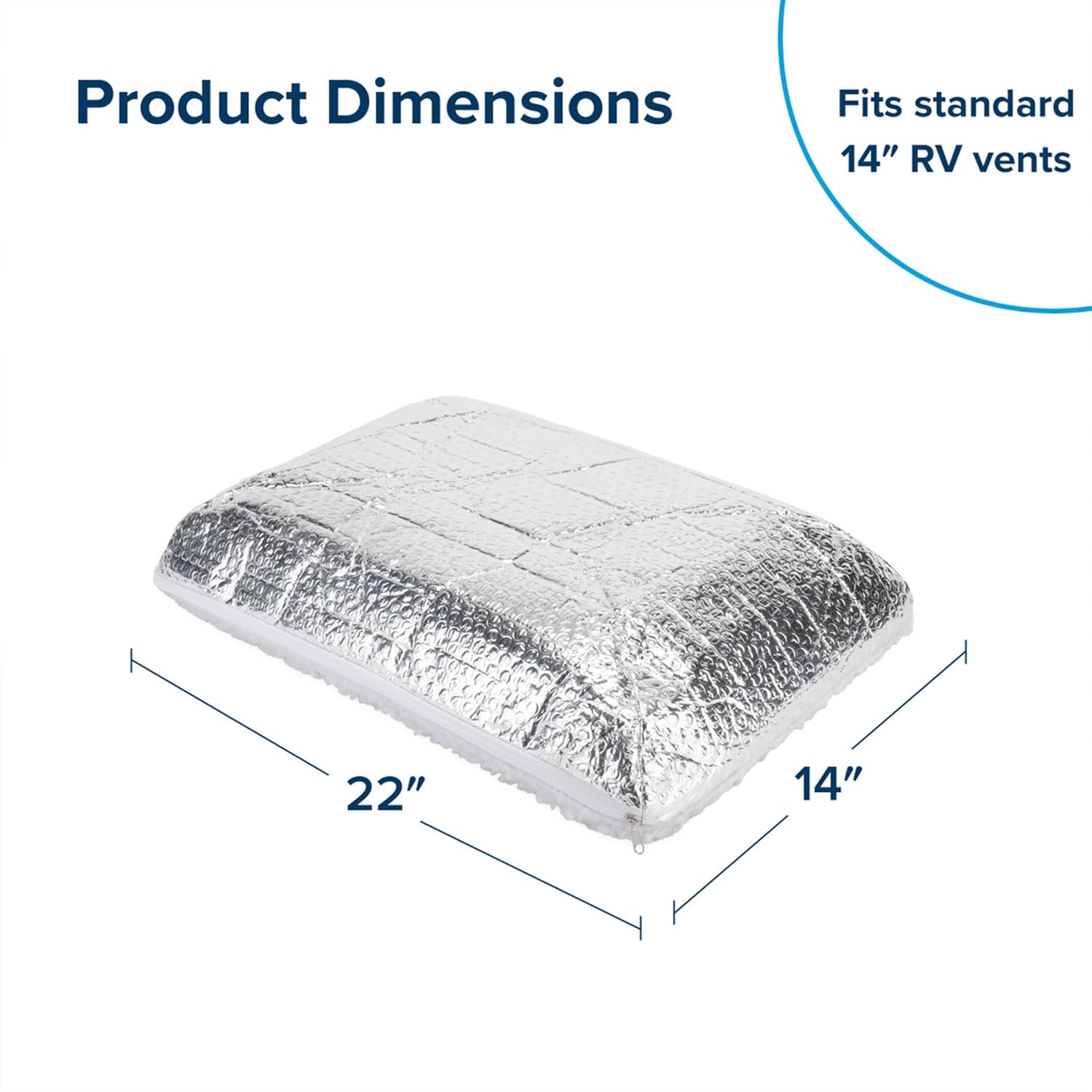 Camco's Dome-Shaped RV Skylight Insulator helps deflect damaging sun rays from your RV's skylight. It fits standard 14-inch x 22-inch RV skylights with a 4-inch depth or more. Once installed, the insulator helps reduce heat transfer, increases A/C efficiency and saves energy. This product helps keep your RV cooler in the summer and warmer in the winter. The skylight insulator measures 14-inches x 22-inches x 4 ½-inches at the thickest point. Product includes: (1) foam skylight insulator with sewn cover, (2) adjustable straps and installation hardware. Easy to install.