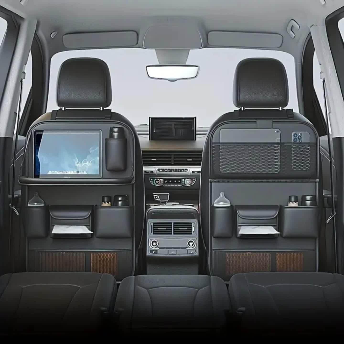 • All-in-One Backseat Organizer & Protector--Combines a foldable table tray, tablet holder, and multiple storage pockets to keep backseats clutter-free. Features built-in kick mats to protect car seats from dirt, scratches, and spills.