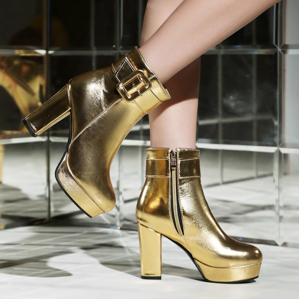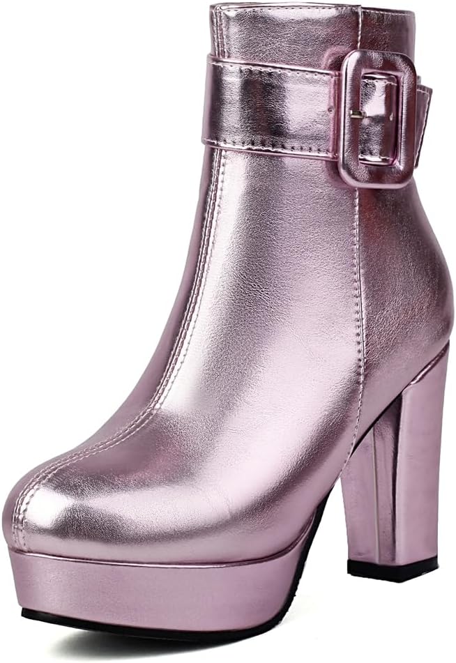 Chunky Platform High Heel Ankle Boots For Womens Round Toe Buckle Size Zipper Winter Dressy Short BootieSize Chart:Size 4 US = EU34 = Heel to Toe 22.0cm/8.66"Size 4.5 US = EU34 =Heel to Toe 22.0cm/8.86"Size 5 US = EU35 = Heel to Toe 22.5cm/9.06"Size 5.5 US = EU36 = Heel to Toe 23cm/9.06"Size 6 US = EU37 = Heel to Toe 23.5cm/9.25"Size 6.5 US = EU37 = Heel to Toe 23.5cm/9.25"Size 7 US = EU38 = Heel to Toe 24cm/9.45"Size 7.5 US = EU39 = Heel to Toe 24.5cm/9.65"Size 8 US = EU39 = Heel to Toe 24.5cm/9.65"Size 8.5 US = EU40 = Heel to Toe 25cm/9.84"Size 9 US = EU41 = Heel to Toe 25.5cm/10.04"Size 9.5 US = EU42 = Heel to Toe 26cm/10.24"Size 10 US = EU42 = Heel to Toe 26cm/10.24"Size 10.5 US = EU43 = Heel to Toe 26.5cm/10.43"Size 11 US = EU44 = Heel to Toe 27.0cm/10.63"Use your length and width measurements to find your shoe size on the above size chart. If your foot is fat or wide, please select a bigger size up.PERFECT ITEM FEATURES:☛Item Type: Ankle-boots☛Main Material: High Quality Leather upper; Comfort Velvet Lining; Non-skid Rubber sole.☛Closure_type: Side Zipper☛toe_style: Round toe☛Heel Height: Heel Height 3.74 inch☛Width: Medium (BM)☛Season: Spring/Autumn/Winter☛Color: Multiple colors optional☛Occasion Lifestyle: Fashion,Classic,Casual.