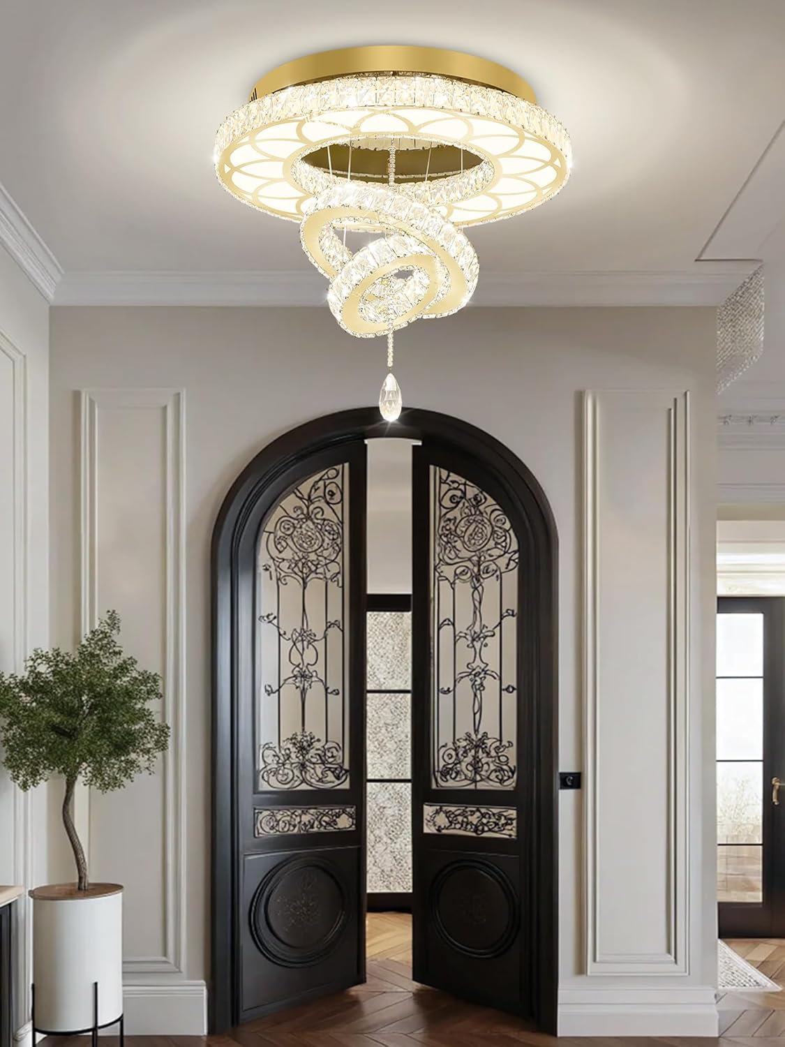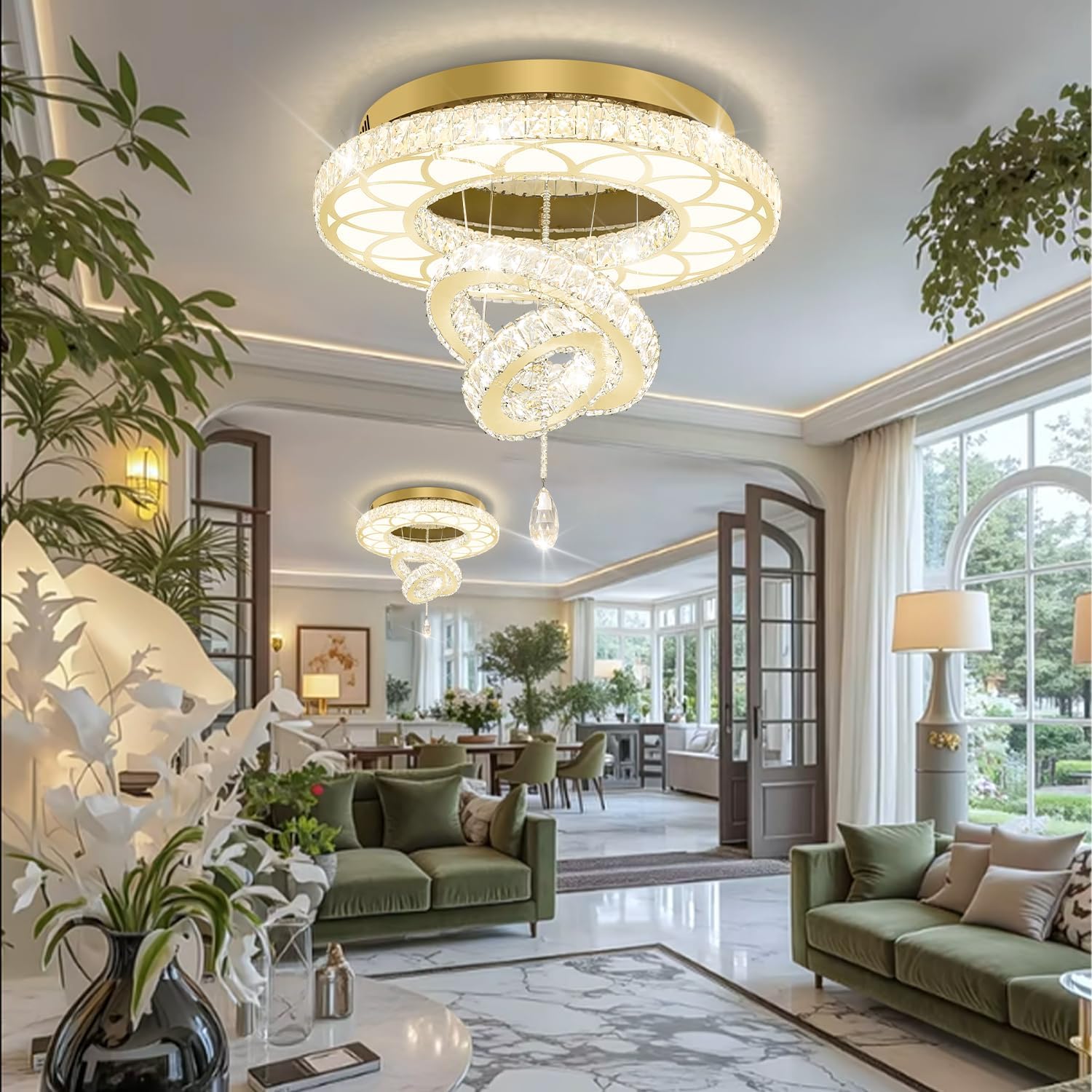 Dia 20" Modern Crystal Chandeliers Black Bedroom Chandelier LED Dimmable Light Fixtures Flush Mount Ceiling Light for Dining Room Living Room