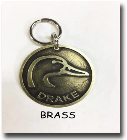 Unique Duck Head dog pet ID collar tag in brass, copper or nickel silver. Raised relief etched pet name tag. Customized with your pet's name on the front and your name and phone number on the back.