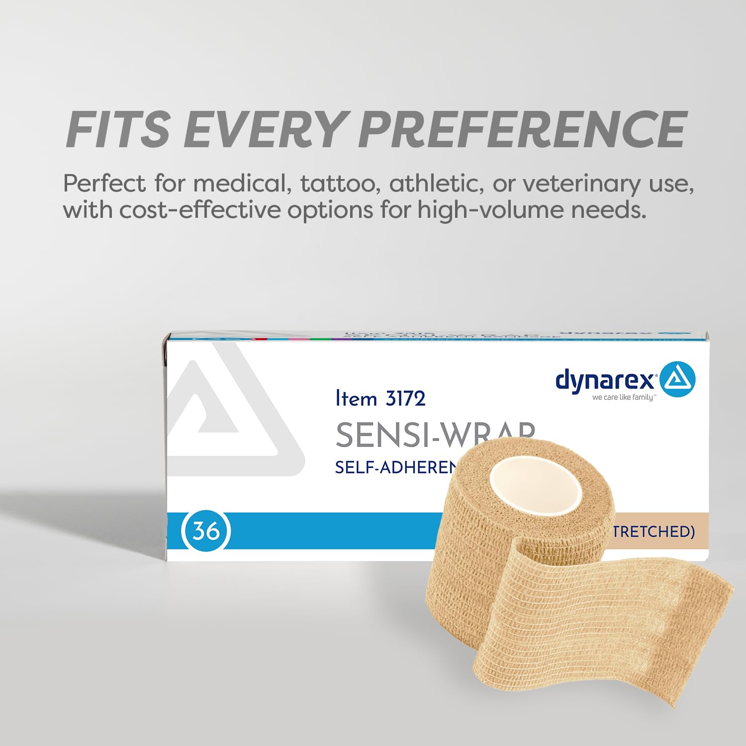Dynarex Sensi-Wrap Bandages are lightweight bandages that are self-adherent that can easily be torn without scissors. These Sensi-Wrap Bandages stick to itself, but not to other materials or skin.