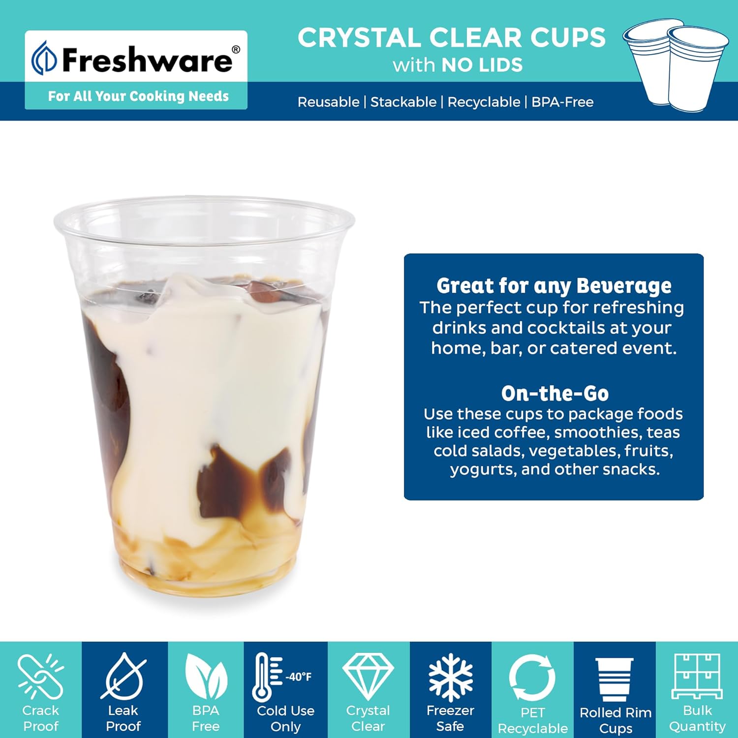 If a big event is coming up, you can probably already imagine the endless pile of dishes you will have to deal with when the party is over. Don't worry, we have got your back with the pack of 100 disposable cups, your new allies for an easier after-party cleanup. The clear cups are durable and easy to use, as well as stackable. They have a 16 oz capacity that is perfect for any type of drink, including soda, cocktails, beer or wine. Why is this product for you? The 1000-PCS PET cups should not be missing from your home. Practical, durable, and reliable, these kitchen essentials are the more practical way to ensure everyone has a cold drink without having to worry about shattered glass or too many dishes. The cups have a rolled rim for more safety and ergonomic design for stability. Some of the amazing features of this product: Practical and versatile Easy to use Stackable design 1000-PCS Great for catering and food trucks Clear color Made with 100% plastic Rolled rim Child-friendly Capacity: 16 oz Ideal for parties, barbeques, and picnics Make your life easier with the Freshware clear cups!