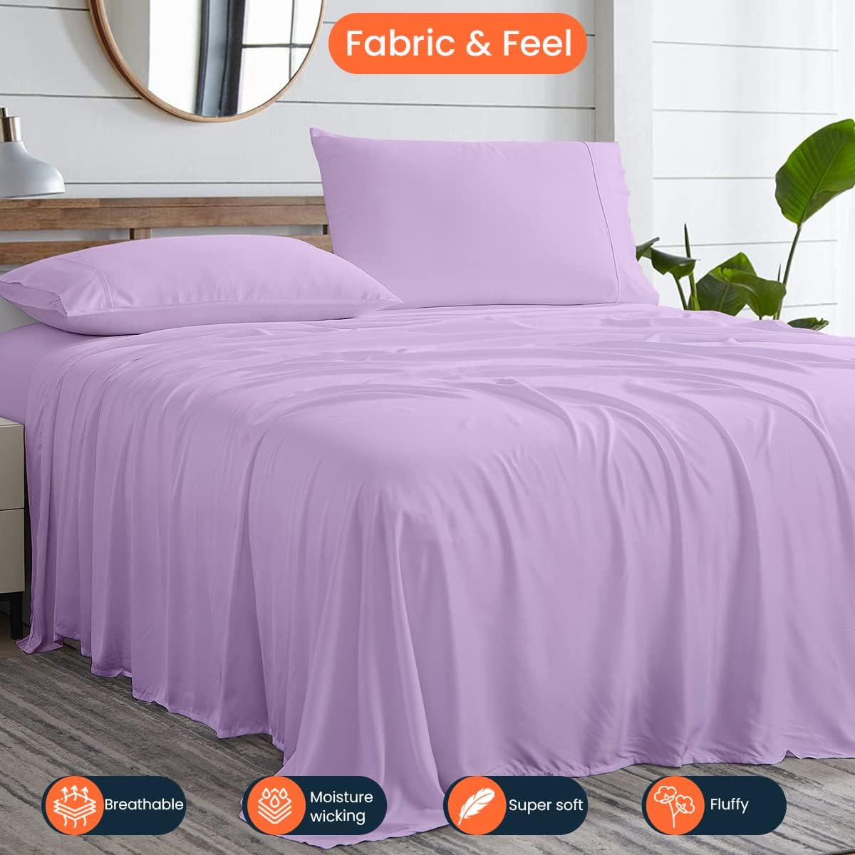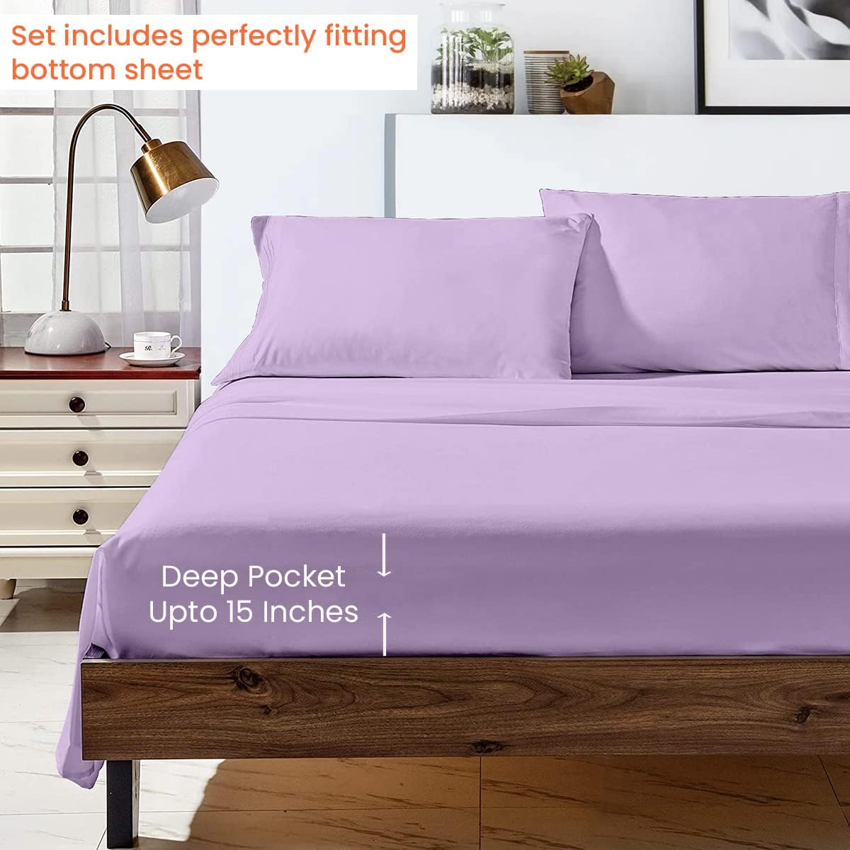 Full Size Sheets Luxury Soft 100% Egyptian Cotton - Sheet Set for Full Size Mattress Lavender Solid 600 Thread Count 15 Inch Deep Pocket