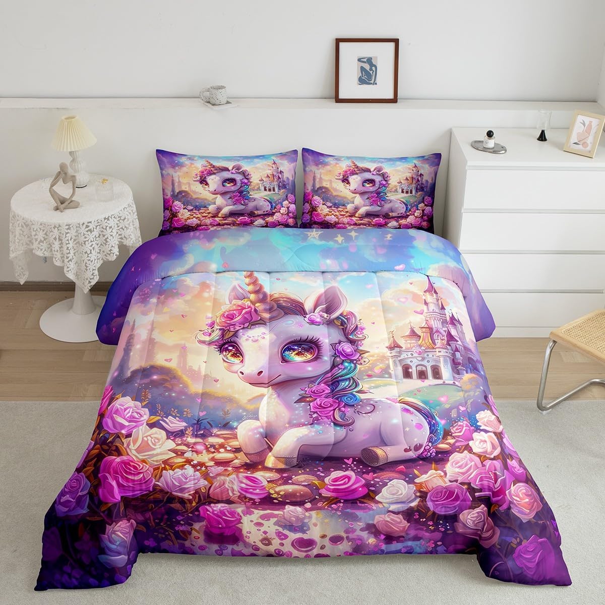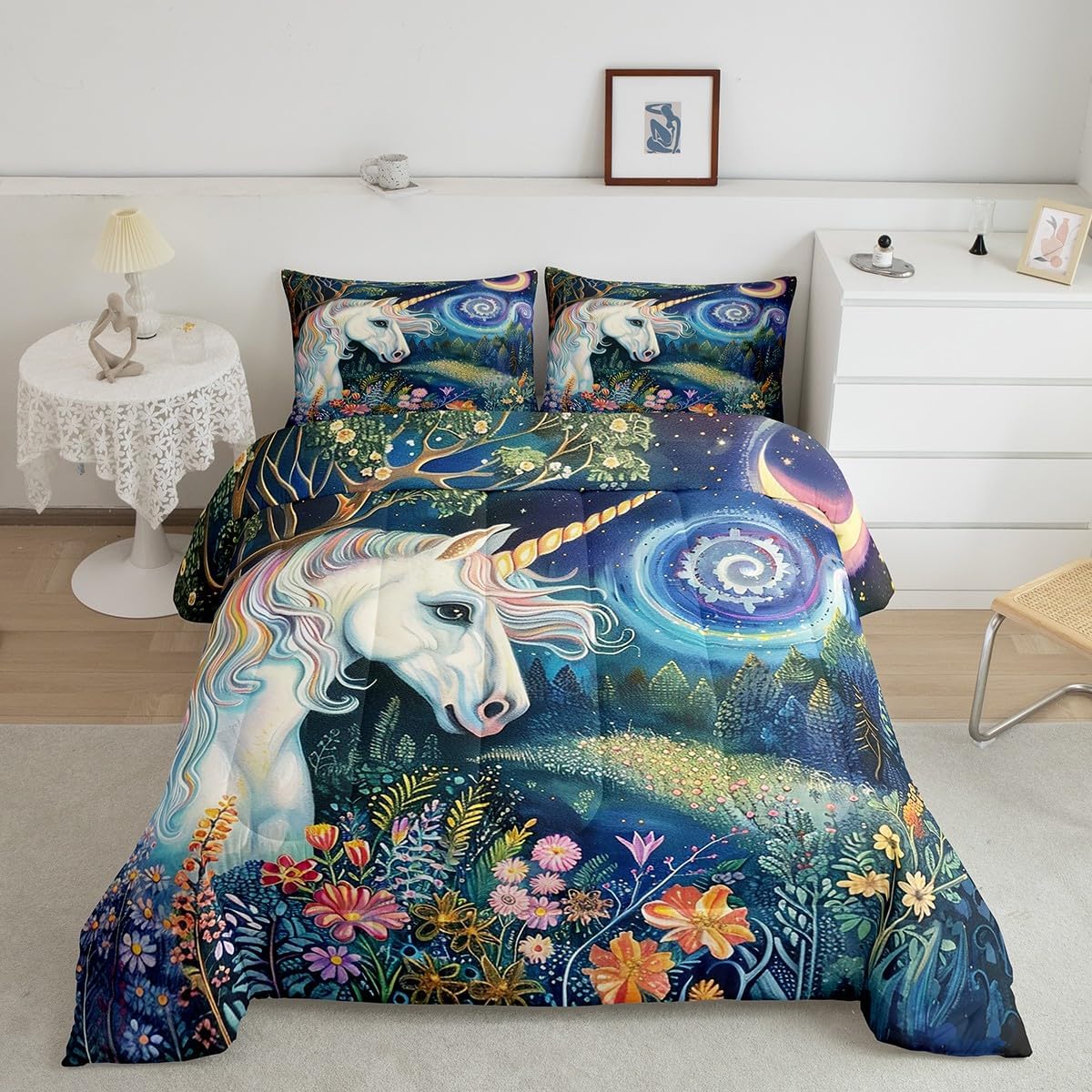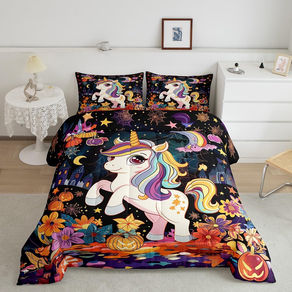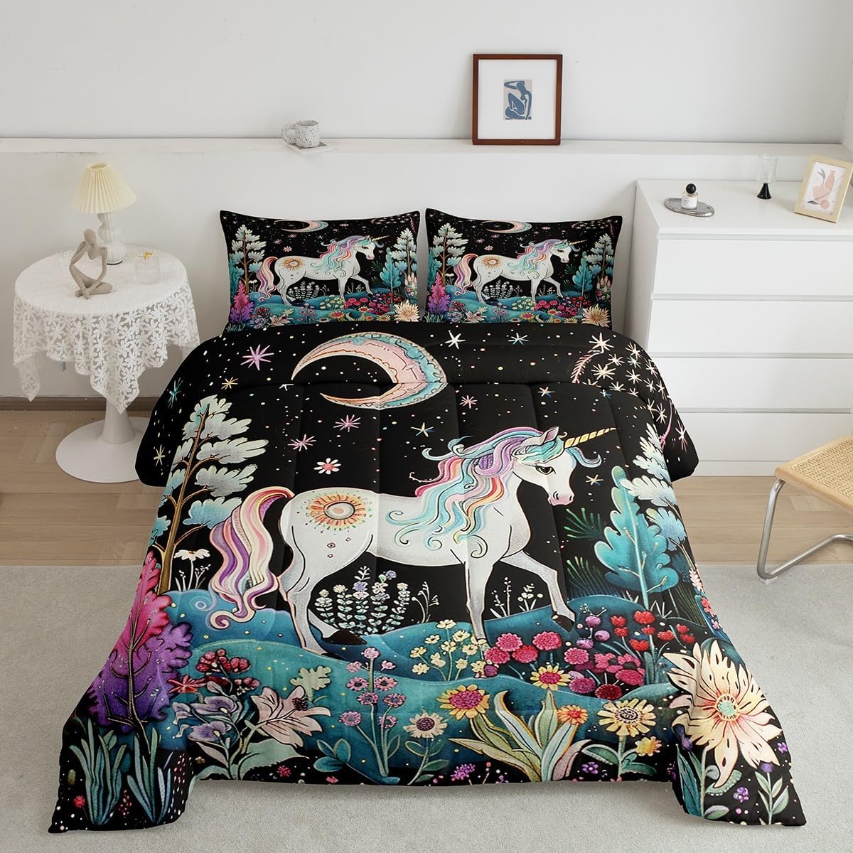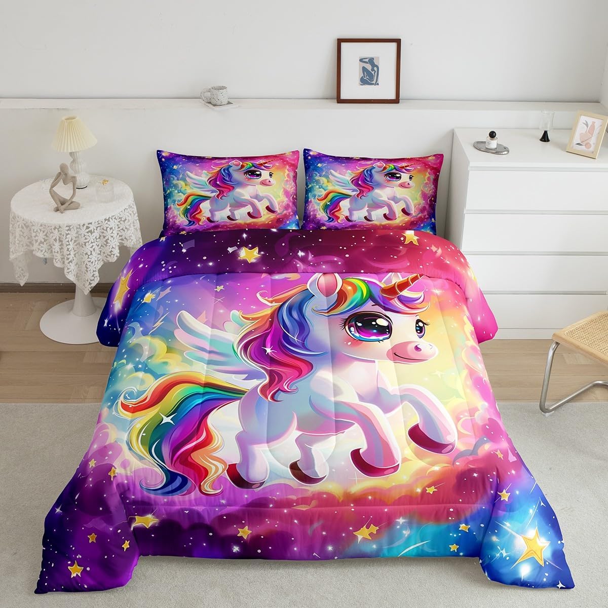 Best blessings: Makeover your bedrooms every season with our Comforter sets. Perfect item for your room, girls boys youth room, master bedroom. Also can order it for your mom, dad, sister, brother, grandma, wife, husband, daughter, son and all other beloved. Size Information: 1 x Toddler size comforter 42"W x 58"L, 1 x pillow case 30"W x 20"L, 2pcs. 1 x Twin size comforter 68"W x 90"L, 1 x pillow case 30"W x 20"L, 2pcs. 1 x Full size comforter 79"W x 90"L, 2 x pillow case 30"W x 20"L,3pcs. 1 x Queen size comforter 90"W x 90"L, 2 x pillow case 30"W x 20"L,3pcs. 1 x King size comforter 104"W x 90"L, 2 x pillow case 36"W x 20"L,3pcs. Useful and practical: A luxurious product for homes, dorm rooms, hotels, guest rooms. Practical to use for being polyester, feels like cotton which is super soft and breathable. No chemicals used, No dye substance harming the health of you or your family. Unique design: Vivid Colors won't fade thanks to new 3D digital printing methods. These unique designs match well with various color palettes of your rugs, curtains, headboard, furniture, and all other decor accessories. Personalized: As manufacturers of digital printed home textiles, we follow current trends and bring you the latest home fashion. You can give it to your family or friend, relative or boyfriend girlfriend, or to yourself, the item should be interesting and authentic. Note: Machine washed in cold water. Do not bleach, Tumble dry low. The Bedspread and Pillow Shams are printed on the Front Side Only.