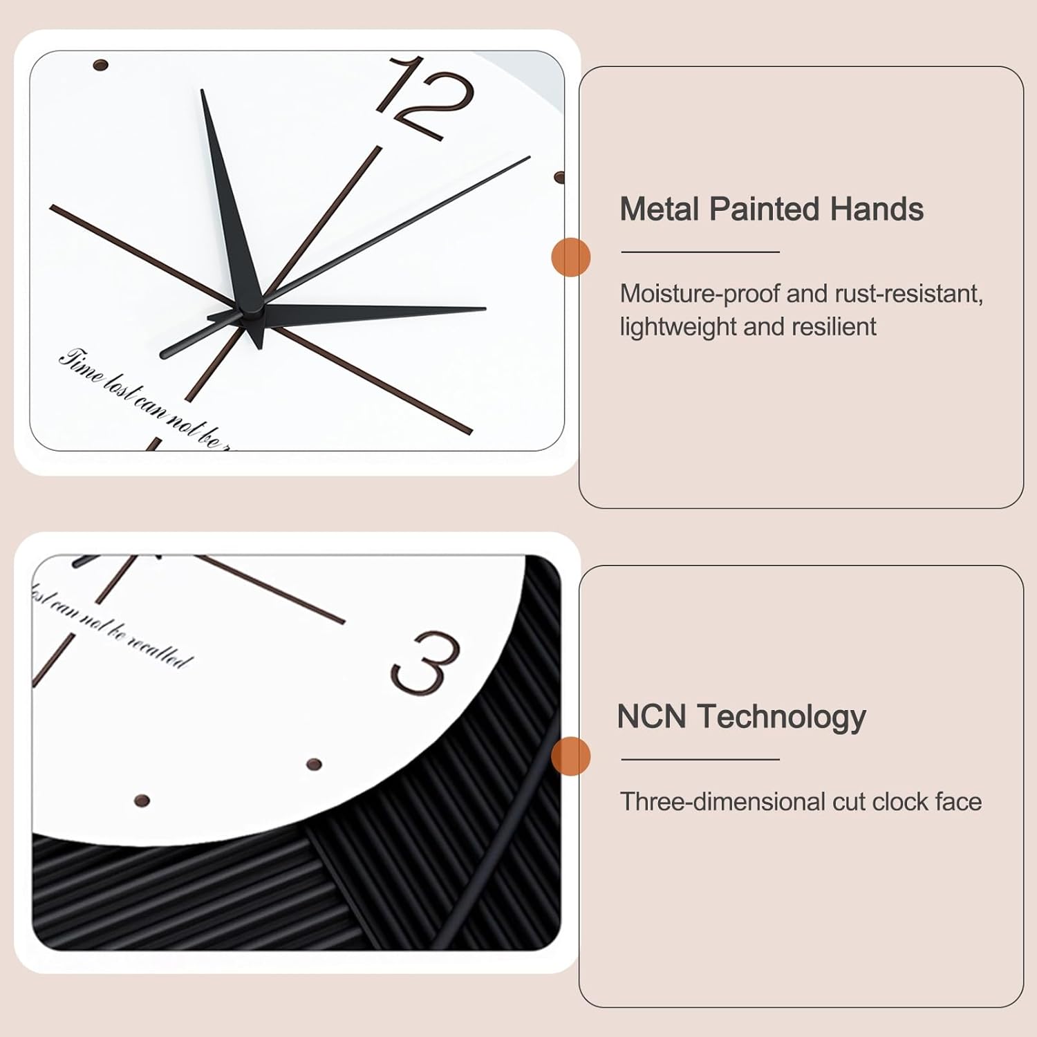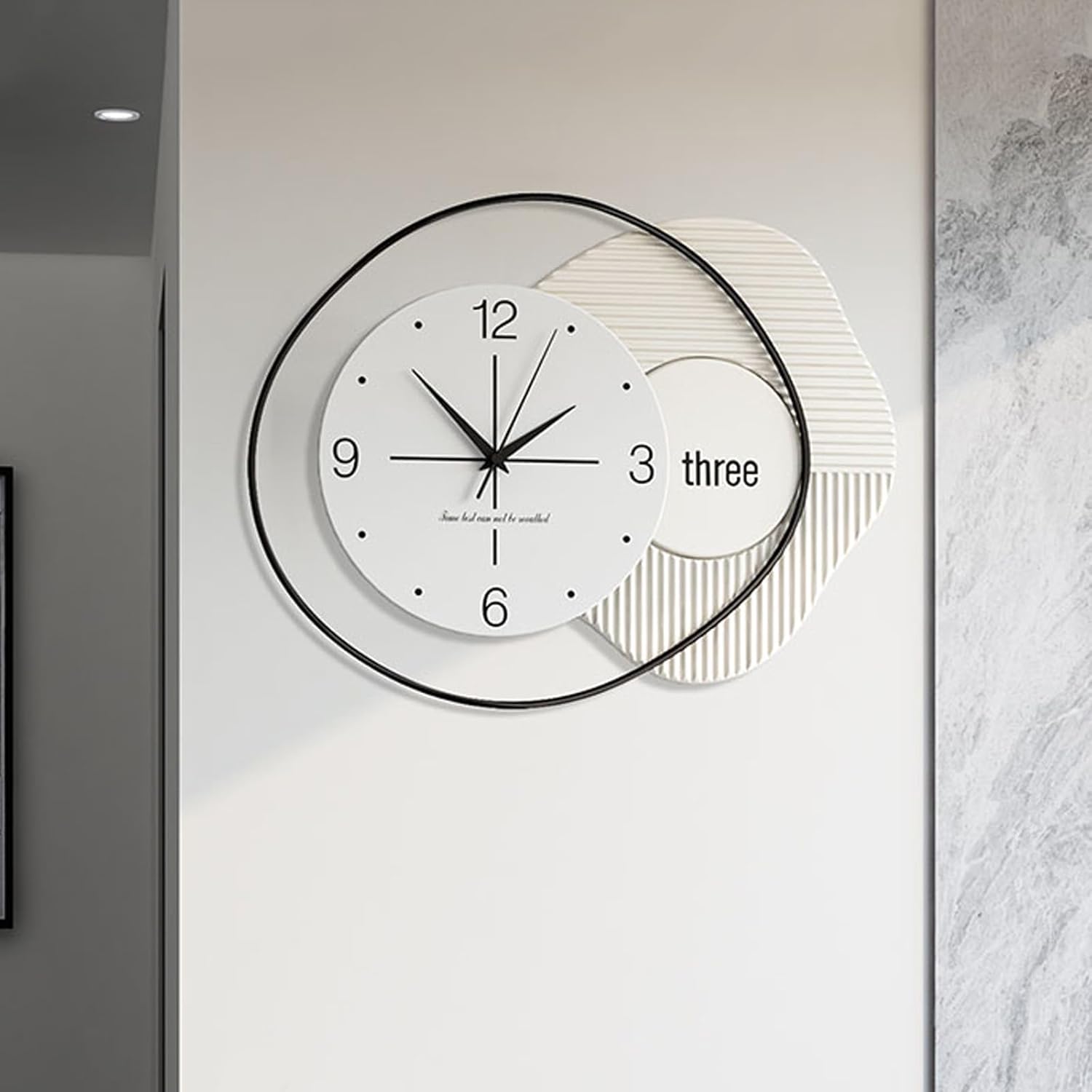 ### Elevate your home decor with this stylish and modern wall clock, a perfect blend of simplicity and understated luxury. The clean, circular silhouette and metal frame add a touch of creative elegance to any wall. The large white dial with striking black numerals makes it easy to read the time even from across the room, while the silent quartz movement ensures a peaceful environment – say goodbye to annoying ticking sounds.- Key Features:>> Exquisite Texture, Delicate TouchThe hanging clock is made of carefully selected materials, with a finely polished surface that feels smooth and delicate to the touch. Cleaning is easy and effortless, and it resists dust accumulation, keeping your wall decoration looking clean and new.>> Silent Design, Peaceful CompanionEquipped with a high-precision silent movement, it operates smoothly and silently, eliminating annoying ticking sounds. Enjoy a quiet and comfortable environment in your bedroom, study, or office.- Product Specifications:> Name: Silent Decorative Wall Clocks / Wall Decoration> Style: Modern Minimalist> Material: Environmentally friendly board + Iron art> Size: Please refer to the size chart> Applicable Space: Entrance, Corridor, Hallway- Package Includes:1 * Wall Clock