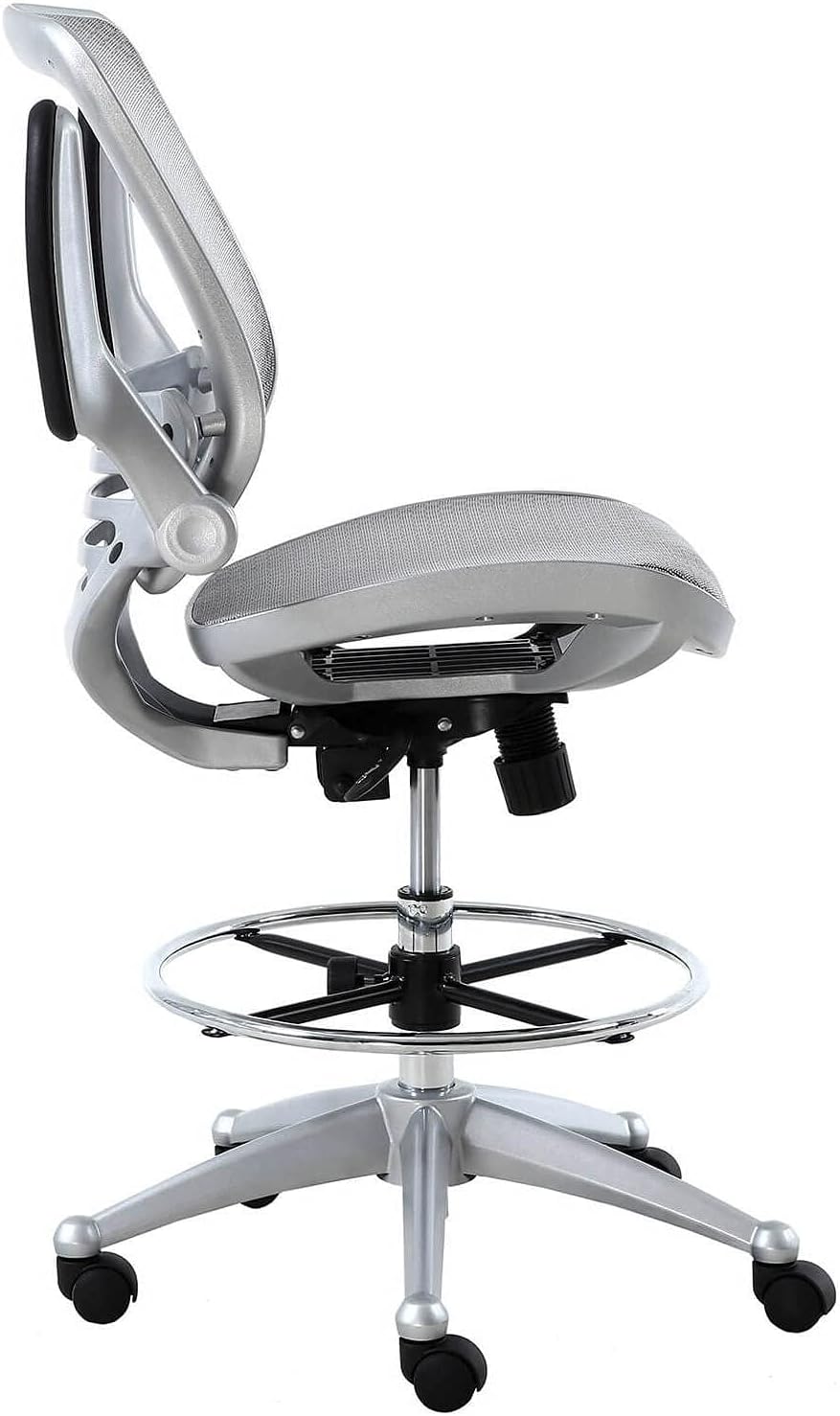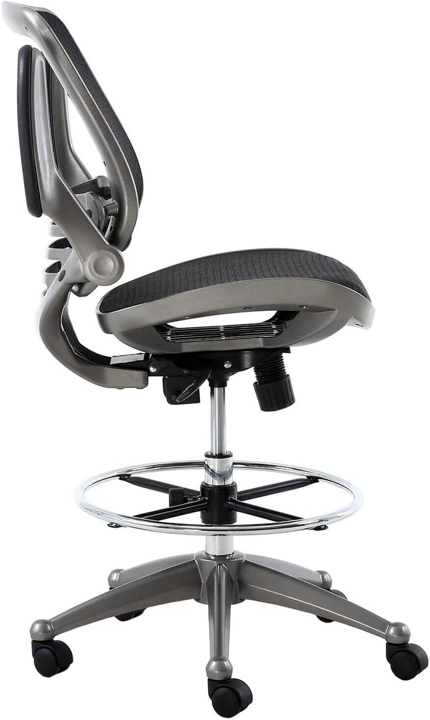 Additional features include: gunmetal finish frame. Pneumatic seat Height adjustment. 2-To-1 synchro tilt with tilt tension adjustment. Infinite tilt lock allows you to lock the chair in any tilted position. Waterfall seat edge for leg comfort (reduces the pressure on the back of the legs). chrome Pneumatic cylinder. 20-Inch height adjustable chrome foot ring. Heavy duty gunmetal finish base with dual wheel hooded casters. 360-Degree swivel. Chair Dimensions: Seat size: 19 inches wide x 19. 5 inches in depth. Back size: 17. 5 inches wide x 21 inches high. Seat Height: 24 inches to 31 inches high (measured from the floor to the top of the seat). carton Dimensions: 26 inches x 14 inches x 26 inches. Carton weight: 51 pounds.