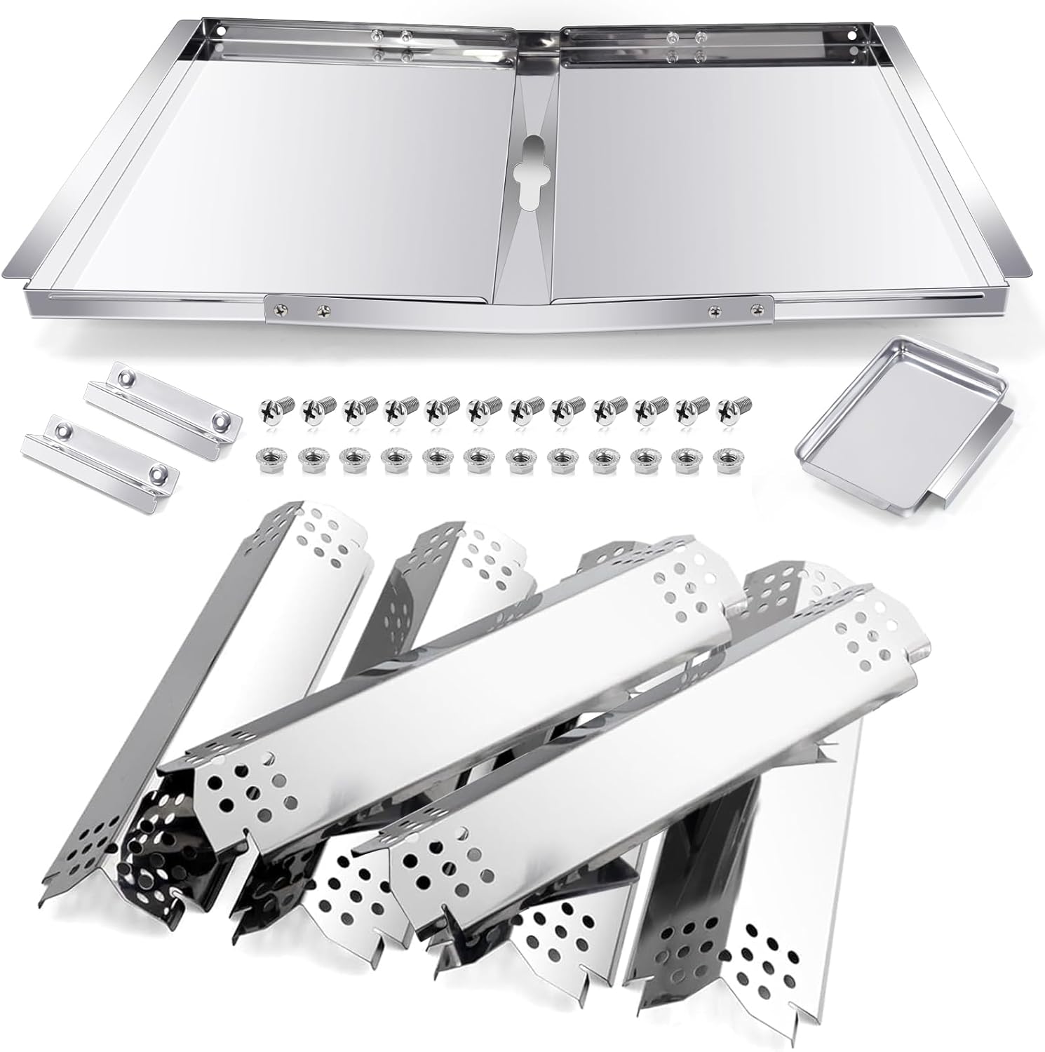 【Specification】 【Compatible Models】 ☛ for Nexgrill 4 burner 720-0830H, 720-0830X, 720-0830A, 720-0830D, 720-0783E, 720-0958A ☛ for Kenmore 122.33492410 ☛ for BHG Grill 720-0783H ☛ for Members Mark 4 Burner Gas Grill 720-0830G 【Product Packaging】 4 x Stainless Steel Heat Plate, Dimension: 14 9/16" x 4 3/16" 1 x Grease Tray, Grease Tray Dimension: Width 15 1/2", Adjustable width between 24" and 30" 1 x Catch Pan, Catch Pan Dimension: 7 13/16'' x 5 3/4'' 1 x Middle-sheet 2 x Side-sheet 1 x Grease Cup 2 x Brackets 4 x M5 Flat Bolts 8 x M5 Round Bolts 12 x M5 Flange Nuts 【Product Features】 High-temperature resistant Durable and long-lasting Does not rust easily Easy to install Easy to clean