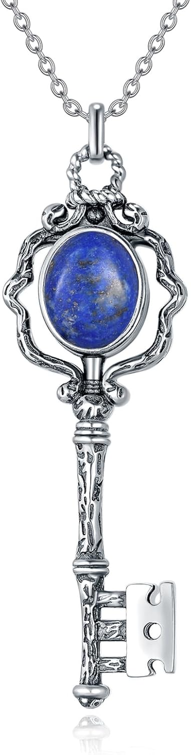 ZPMMPZ Key Neckalce 925 Sterling Silver Vintage Key Pendant Gemstone Jewelry Gift for Women