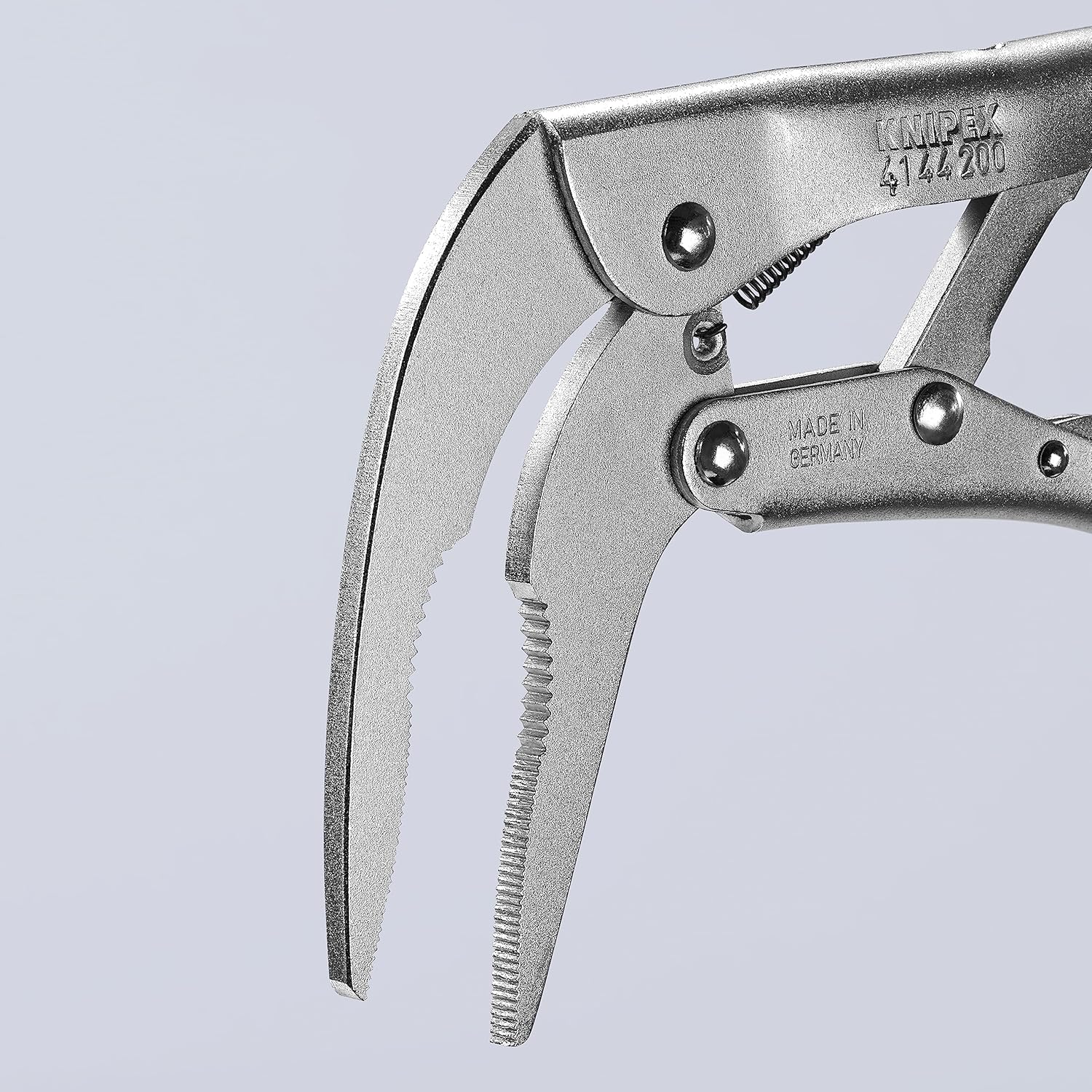 Knipex Tools 41 44 200, 8-inch grip pliers can securely hold or grip Flat, round, square, or hexagonal shaped objects. Long nose grip pliers with narrow long jaws suitable for areas that are hard to reach.