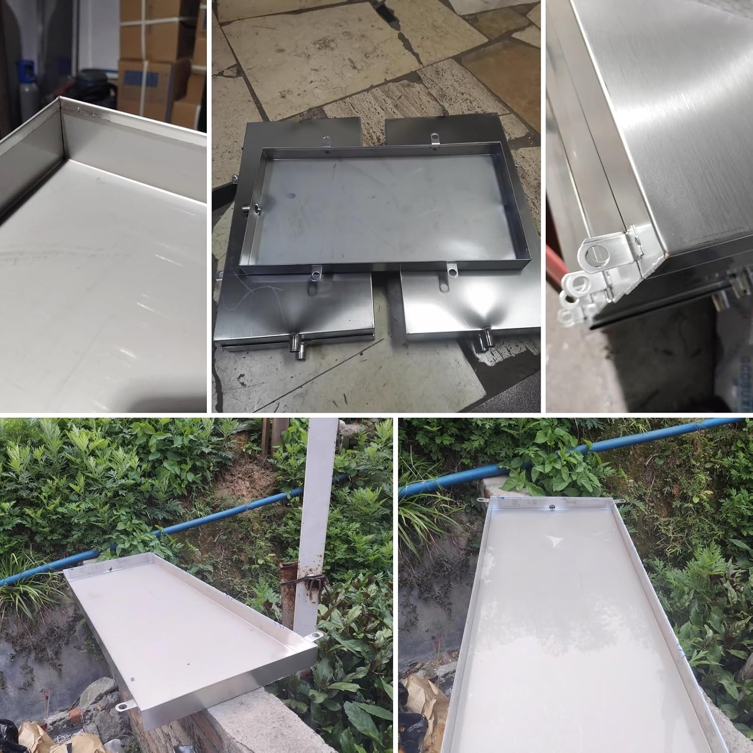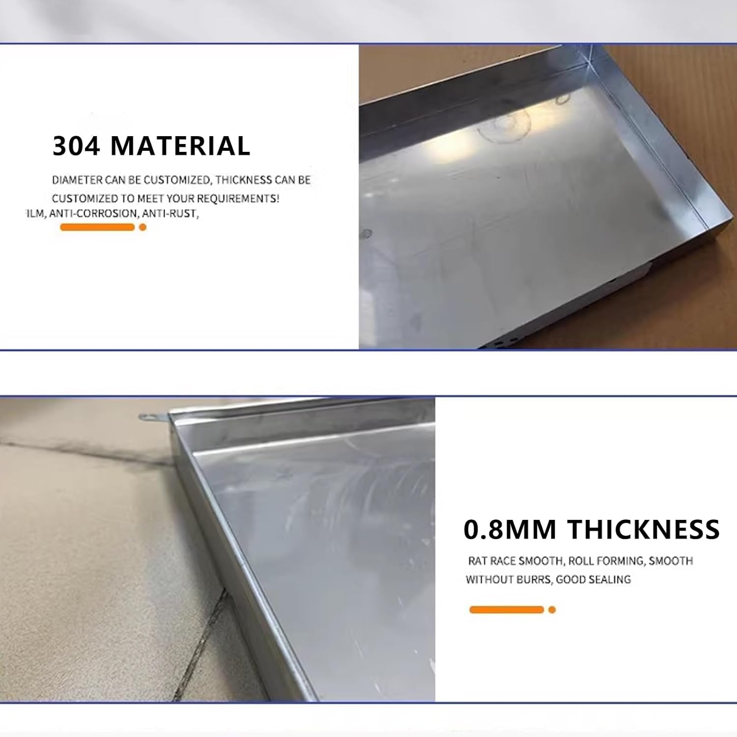 Introducing our versatile air conditioner water catcher, designed to enhance your home comfort while maintaining a clean and organized environment. Crafted from high-quality 304 stainless steel with a thickness of 0.8 mm, this durable product is not only built to last but also effectively prevents outdoor air conditioner leaks, drips, and seepage. With a height of 5 cm and available in sizes ranging from 20 cm to 120 cm, it suits various installation needs. Imagine a tidy workspace with our desktop cable management tray. This tray keeps your charging and data cables neatly stored, preventing tangles and clutter on your desk. It's perfect for maintaining an efficient work environment. In your craft room, our storage box is an ideal solution for organizing tools such as scissors, glue, and colored pencils. The raised edges ensure that your items stay in place, providing easy access to your supplies whenever creativity strikes. For car enthusiasts, our garage oil pan is essential for collecting oil during changes. Made from stainless steel and featuring a convenient drain port, it simplifies the pouring process, making maintenance hassle-free. When it comes to laundry, our detergent storage box keeps your bottles of detergent and softener secure, preventing spills that can stain your floors. It's a practical addition to your laundry room. If you love gardening, our outdoor flower pot tray collects excess rainwater, protecting your balcony or patio from soil erosion while safeguarding the surface underneath. For DIY enthusiasts, our workshop nail and screw tray organizes your hardware by size, with a transparent design that allows for quick identification and access. Lastly, elevate your outdoor barbecues with our BBQ utensil rack. Designed to store grilling tools like forks and tongs, it’s made from high-temperature-resistant materials, ensuring safety and reliability during your cooking sessions.