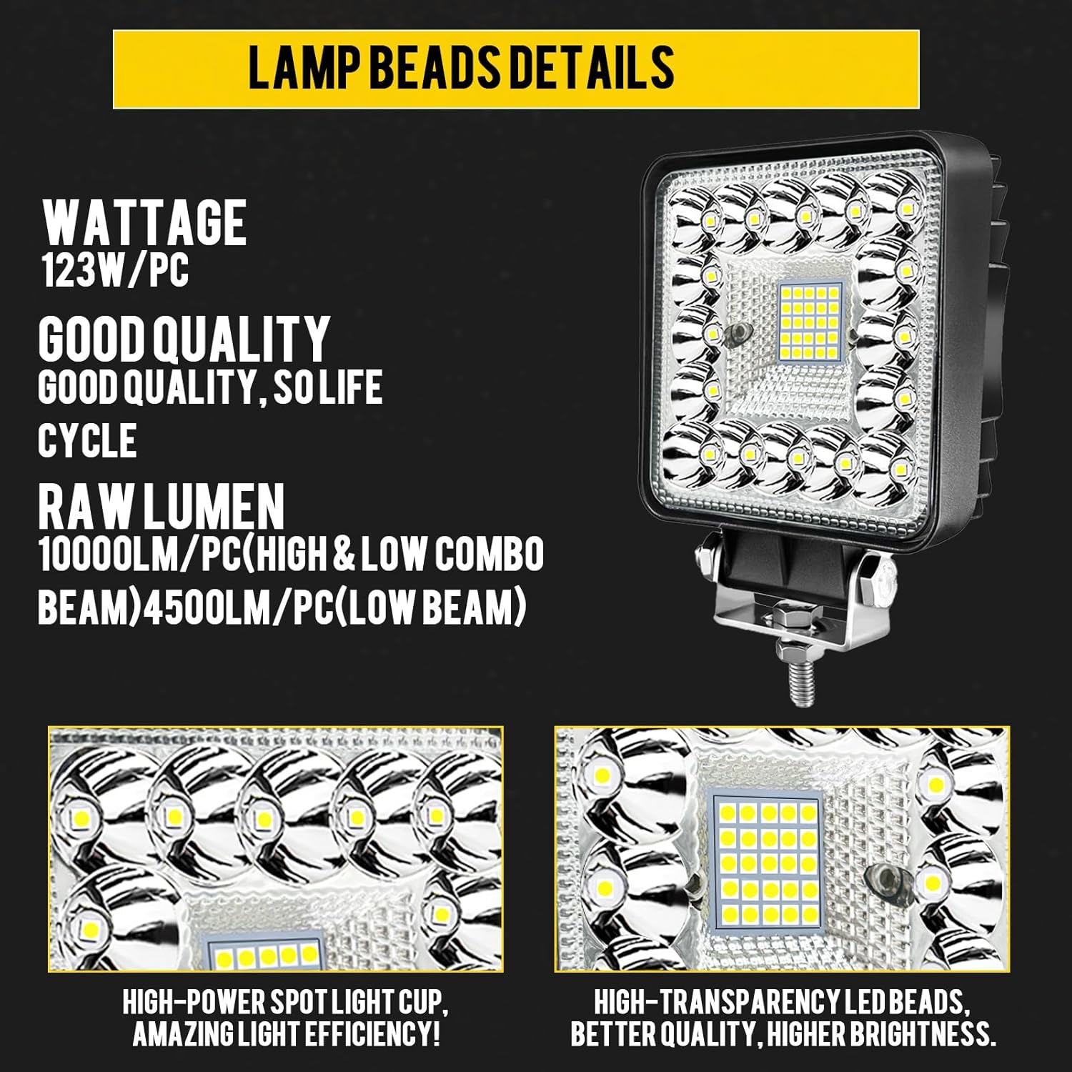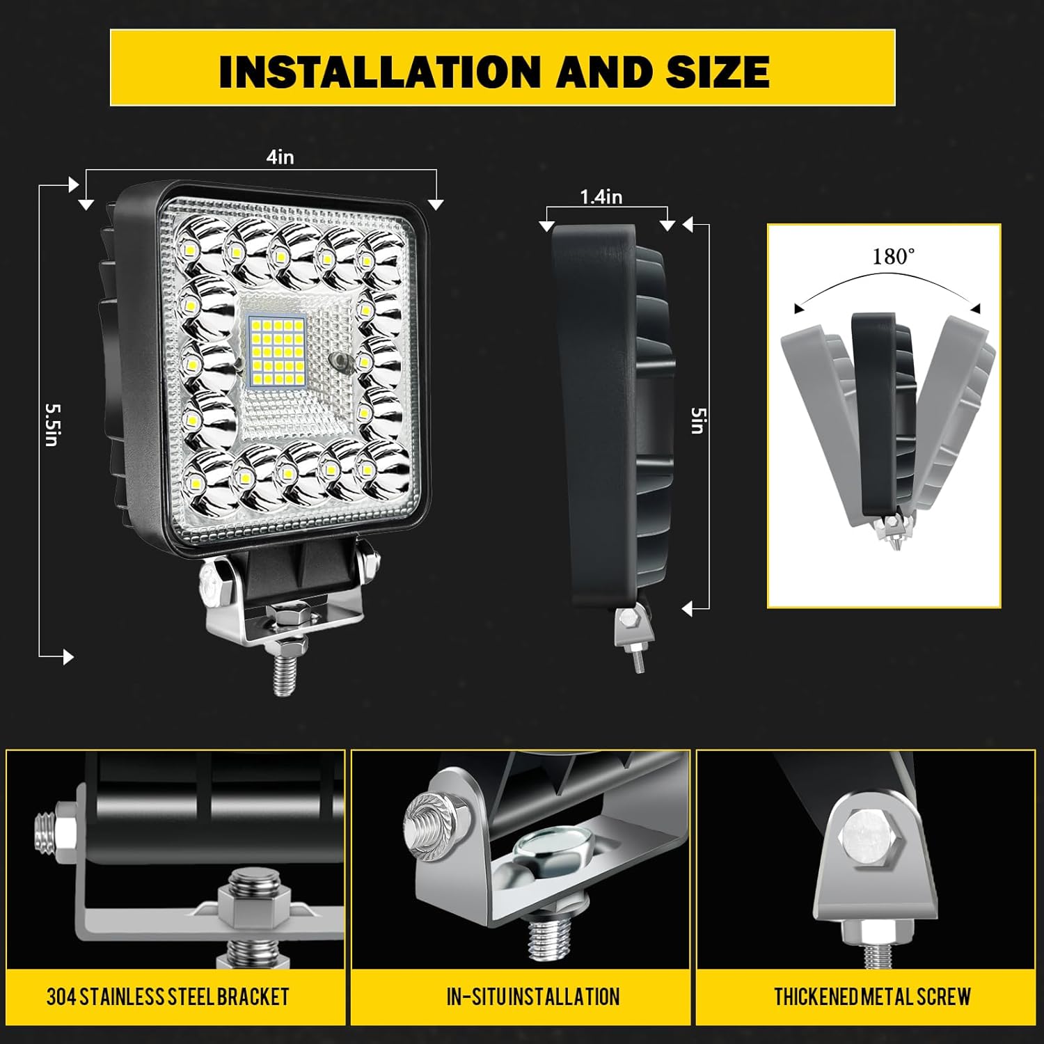 | Light Source Special Features | Spot & Flood Light Pattern, IP67 Waterproof Rate, Adjustable Bracket, 50,000 hours lifespan |