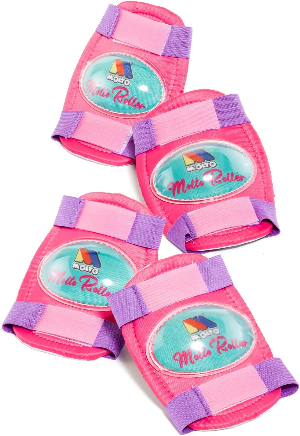 Discover Molto skates for kids. 4 wheel skates for beginners for boys and girls, adjustable from size 25-32 with front brake and safety locking strap. Includes elbow and knee protectors. Inline skates for boys and girls with two positions, the training position with two parallel wheels at the rear and one at the front, and the expert position 3 wheels in line. Adjustable size 31-34, PVC wheels, inner padding, adjustment system with buckles and rear brake.