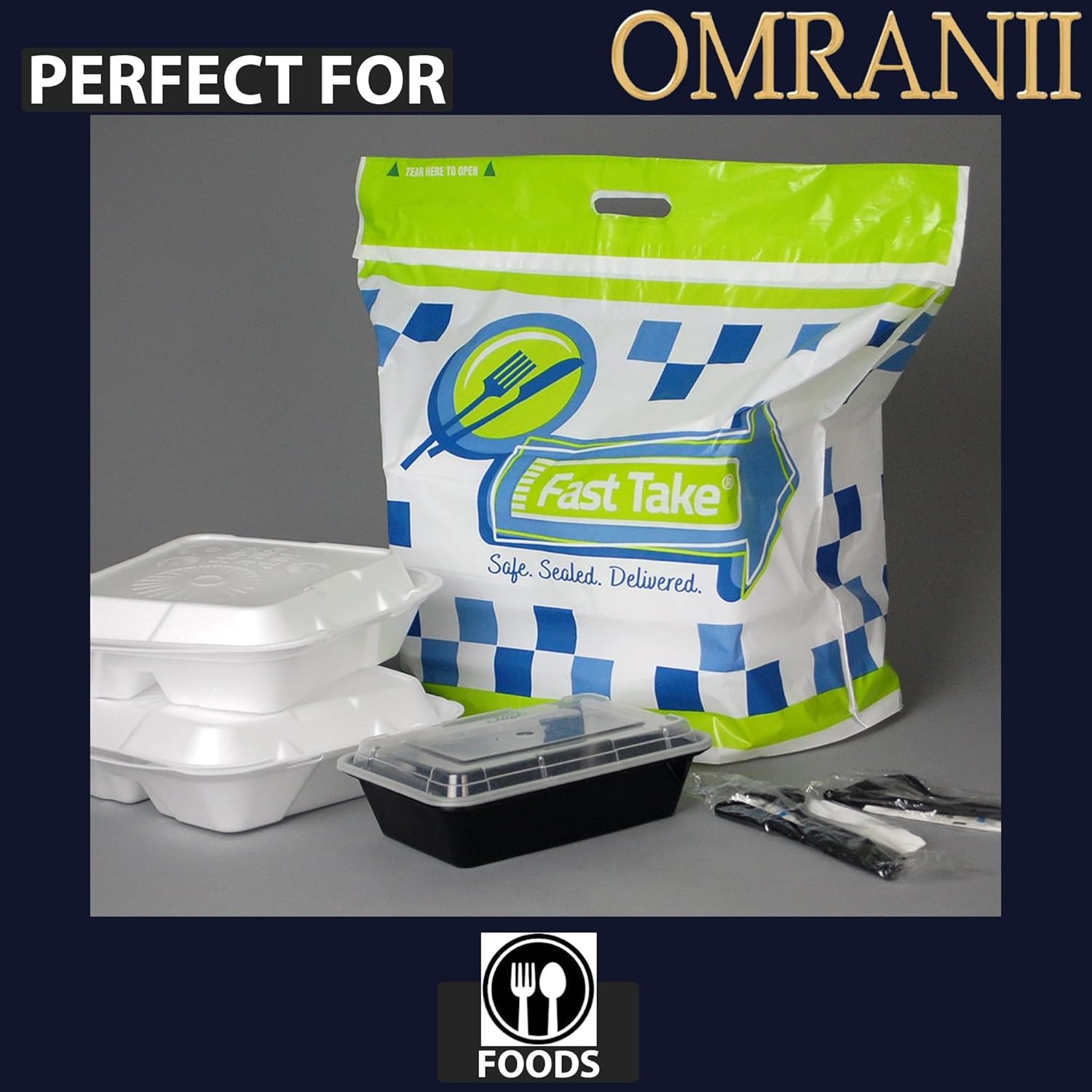 Fast Take Tamper-Evident Carryout Bags are the reliable solution for secure food delivery and takeout service. Made with sturdy 1.5 mil HDPE material, these printed bags feature a strong die-cut handle for convenient carrying and a wide opening with a large bottom gusset for easy loading. Each bag is equipped with a tamper-evident tape closure that ensures contents remain sealed and protected during transport. Ideal for restaurants, catering services, and food delivery operations that prioritize food safety and presentation.