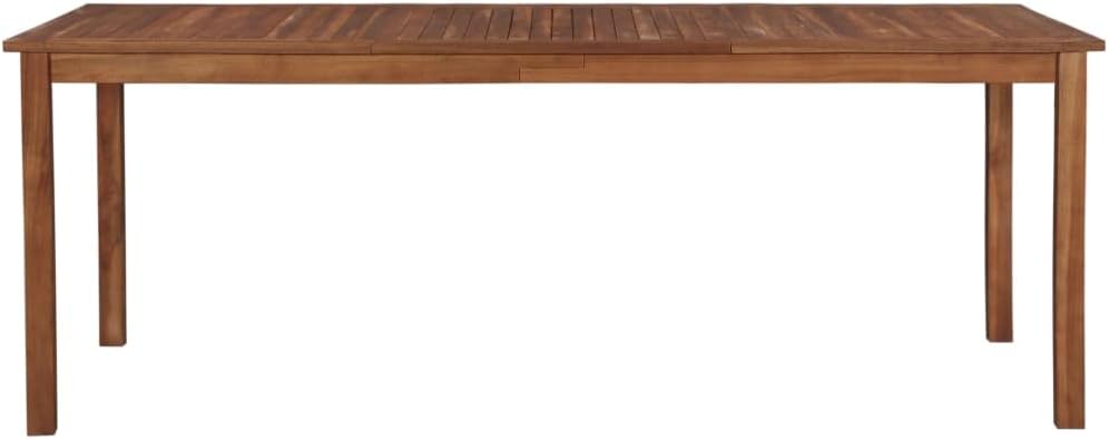Enjoy a nice meal outdoors with your family and friends around our dining table! The wooden table will bring a touch of rustic charm to your patio, garden or terrace.The patio table is made of solid acacia wood with an oil finish, which makes it sturdy, durable and easy to maintain. It has a timeless design and will suit almost any decor. The dining table is easy to assemble.Material: Solid acacia wood (with a natural oil finish)Dimensions: 78.7" x 39.4" x 29.1" (L x W x H)Easy to assemble