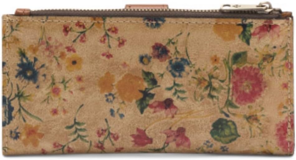 Keep your essentials well organized and safe in Patricia Nash Nazari Wallet. Leather construction. Snap closure. Pockets:One zippered compartment;Two inside slip in pockets;One ID window;Ten card slots. Deep embossed design on the front. Heavy handcrafted stitching. Suede lining. Imported.