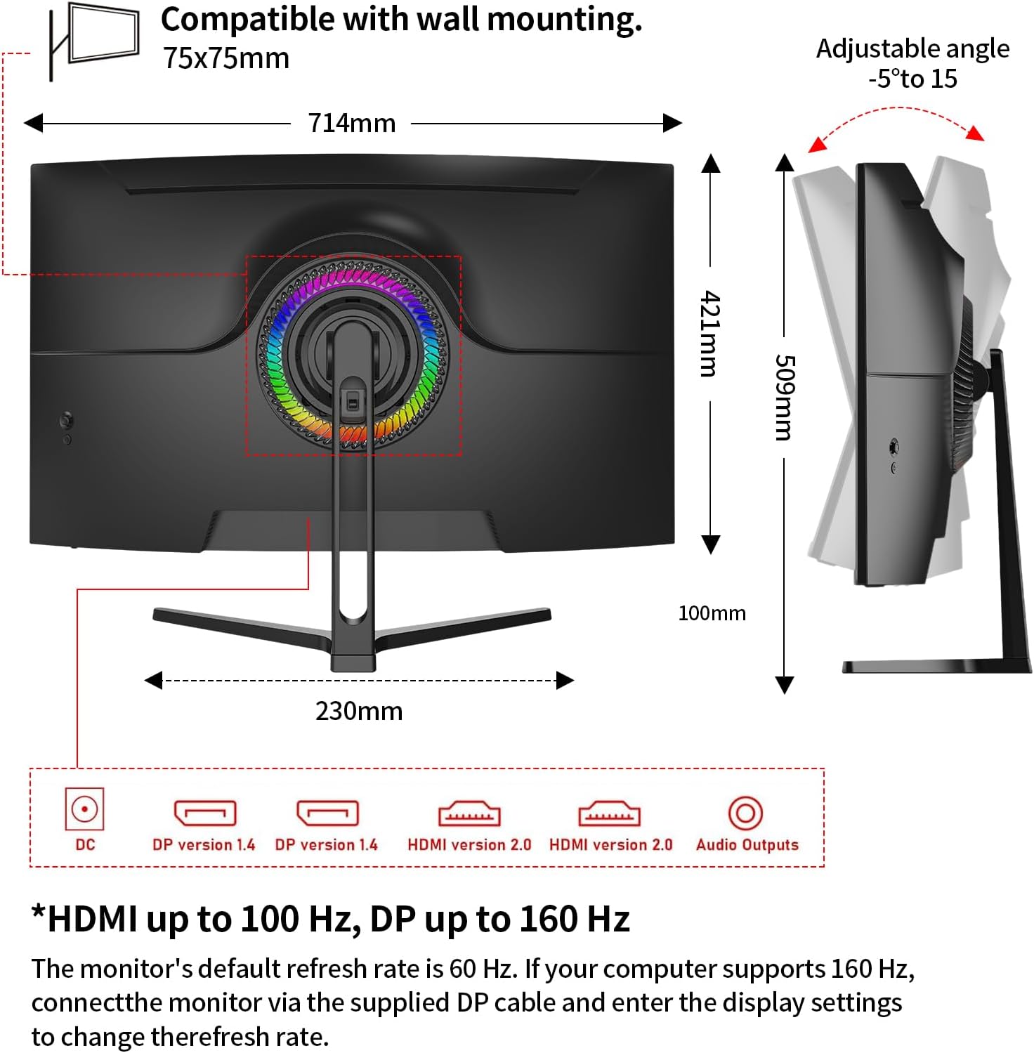 | Additional Features | Curved, Frameless, Tilt Adjustment |