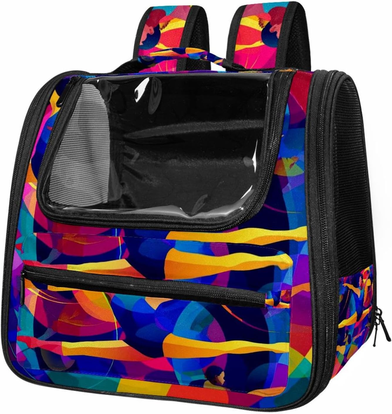 Well made: Cat Backpack Carrier is made from 900D oxford fabric, pp webbing, velvet, nylon, which is very sturdy, environmentally friendly and breathable. Not easily scratched by pet’s claws, pet backpack carrier is SAFETY & ANTI-SCRATCH. The back padding will give you a comfortable and breathable experience. Ventilated Backpack: With a breathable window in the front, this pet backpack allows cats to enjoy the sun without feeling stuffy. There are two side pockets and one big front pocket, and you can take foods or toy for your kitten pet. It is big enough for cat to turn around, and there are side pockets and hook holes, you will enjoy the greatest convenience when taking your cat out. Perfect size: Cat carrier is 15.75x9.84x13.78in/40x25x35cm. Fits most small/medium sized cat, dog, and pet. Quality fleece bed provide a comfortable place for your pet. Lightweight and easy to carry to all places. Built-in harnesses keep your naughty friends from escaping. Removable cosy mat for easier cleaning and let your pet enjoy it inside. Easy to carry: The adjustable shoulder strap of pet carrier bag help you hands-free carrying and makes it the most safe and convenient pet carrier bag for your travel. Seat belt design provide pets with safety protection throughout the trip. Pad protection keep your pets comfortable during travel. Unique Design: Innovative inside graphic design gives you a stereoscopic 3D visual experience. You also send us the photos you interest to make your unique dog or cat carrier. Pet bag is also a amazing gift for pet lover.