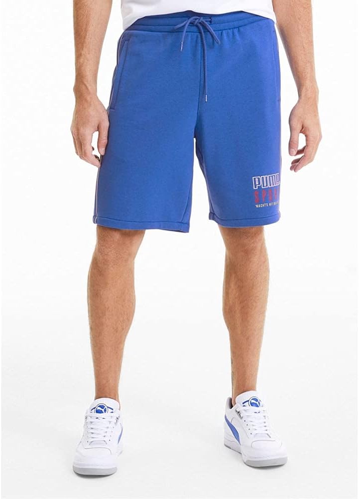 Featuring an elastic waistband and drawstring closure, stay comfy during those morning runs wearing the cotton-blend PUMA® Sport Shorts with side hand pockets.Brand hit on left cuff.68% cotton, 32% polyester;Lining: 100% cotton.Machine wash, tumble dry.Imported.Measurements: Waist Measurement: 29 in Outseam: 19 in Inseam: 10 in Front Rise: 12 in Back Rise: 13 in Leg Opening: 24 inProduct measurements were taken using size MD, inseam 10. Please note that measurements may vary by size.