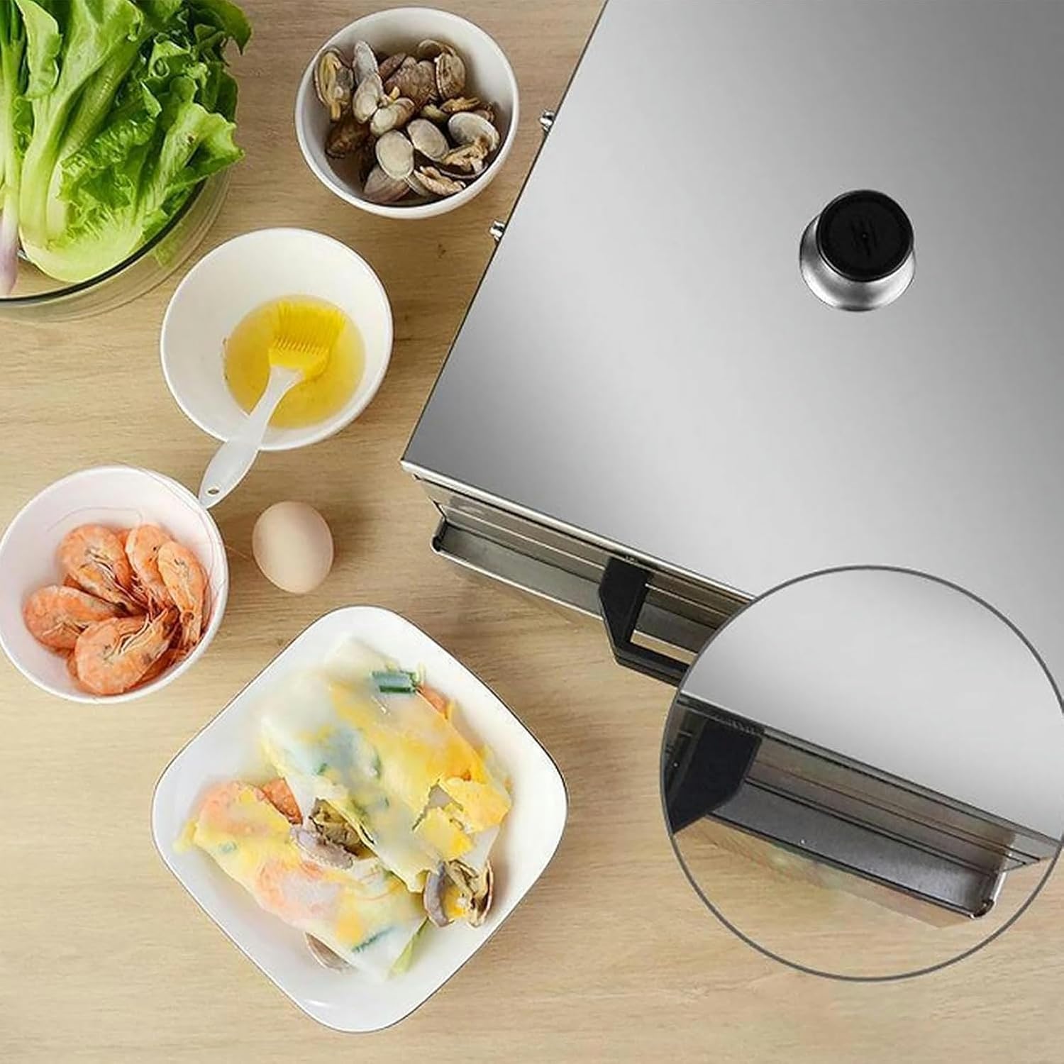 Brush a little oil on the tray.Put the proper amount of rice milk to cover the bottom of the tray.Put the tray into the item and heat it at a high temperature.After steaming for a few minutes, the rice noodle rolls can be drizzled with sauce according to your preference.Brand Material Stainless SteelOperation Mode ManualIs Dishwasher Safe YesIs Electric NoYou will receive:1*Rice Noodle Roll Machine