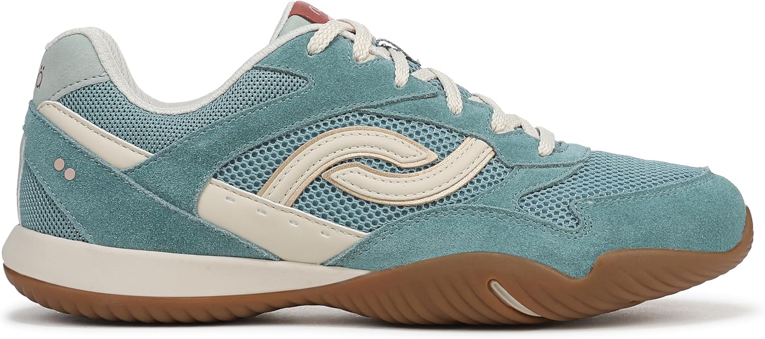 Move, twist, and turn with ease in this retro-inspired, low-profile women's sneaker with built-in flex perfect for dance fitness and every day. BEST FOR: Dance fitness and low-impact workouts + Performance casual wear. PERFORMANCE TESTED: Proven and tested by Heeluxe for optimal performance in training movements. INNOVATIVE TECH: Ultra Flex design moves with you for an effortless feel. MATERIALS: Breathable air mesh with suede overlays + Padded collar. CLOSURE: Secure lace-up front with textured laces. INSOLE: Anatomical insole for arch support + heel support made with partially recycled EVA. MIDSOLE: ACTIVfoam™ EVA for soft cushioning. OUTSOLE: Durable compression-molded rubber sole for grip + Pivot Point at the ball of the foot for smooth and easy turns. WEIGHT: 228 g/8.0 oz per shoe. HEEL-TO-TOE DROP: 7 mm.