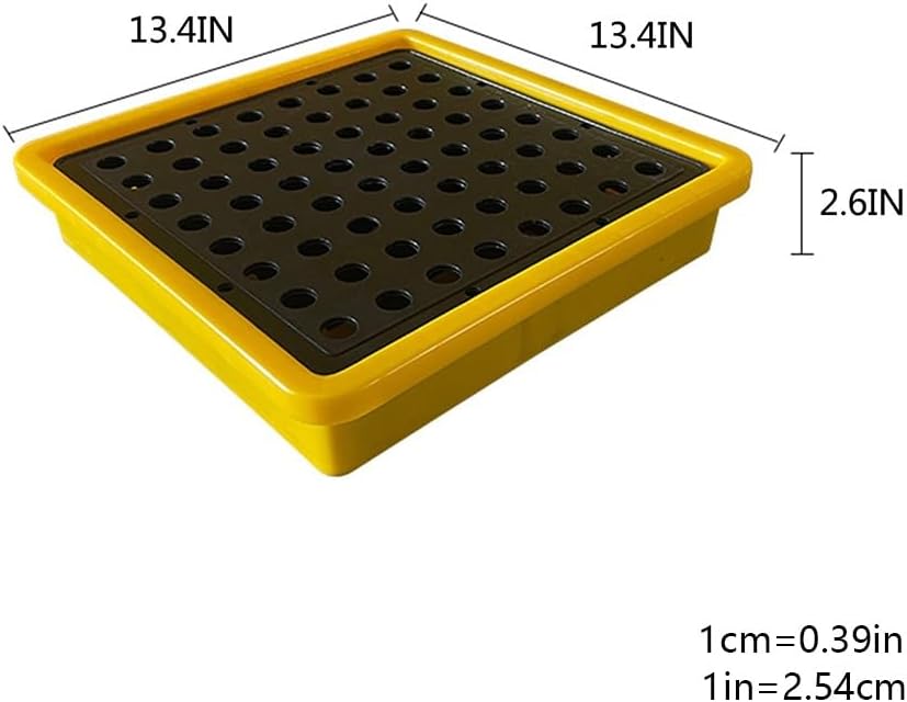 HAIPENG Company is established in 2012, it mainly sell household products to all over the world, during these years, we have sold hundreds of thousands products to million customers from all over the world. Provide high quality products and warm service is always our ultimate goal. ●FEATURE●Pallets and Platforms feature high-performance plastic construction for excellent chemical resistance and impact durability for long life. ●Pallets and Platforms feature Removable flat top grating and Modular platforms are easy to connect with-in U-channel. ●PRODUCT PARAMETERS● Product Name: Leak-proof pallet/Low Profile Spill Containment Pallet● Quantity:1● Material: Polyethylene (HDPE)● Color: Yellow + Black● Product size/Load/Leakage: (L x W x H)13.4x13.4x2.6IN Static load 25kg, leakage 5L; 26.2x14.2x4.7IN Static load 50kg, leakage 20L;26.6x26.6x5.9IN Static load 400kg, leakage 43L;26.4x26.4x3.9IN Static load 300kg, leakage 30L;51.2x26.8x3.9IN Static load 1200kg, leakage 45L;20.9x16.1x4.7IN Static load 30kg, leakage 11L;19.3x14x3.7IN Static load 20kg, leakage 10L● Applicable scene: Warehouse, workshop, maintenance, supermarket, industrial, commercial, factory● Easy to clean: Rinse with clean water●PRODUCT PACKAGING● 1/3/5 Pack x Leak-Proof Tray