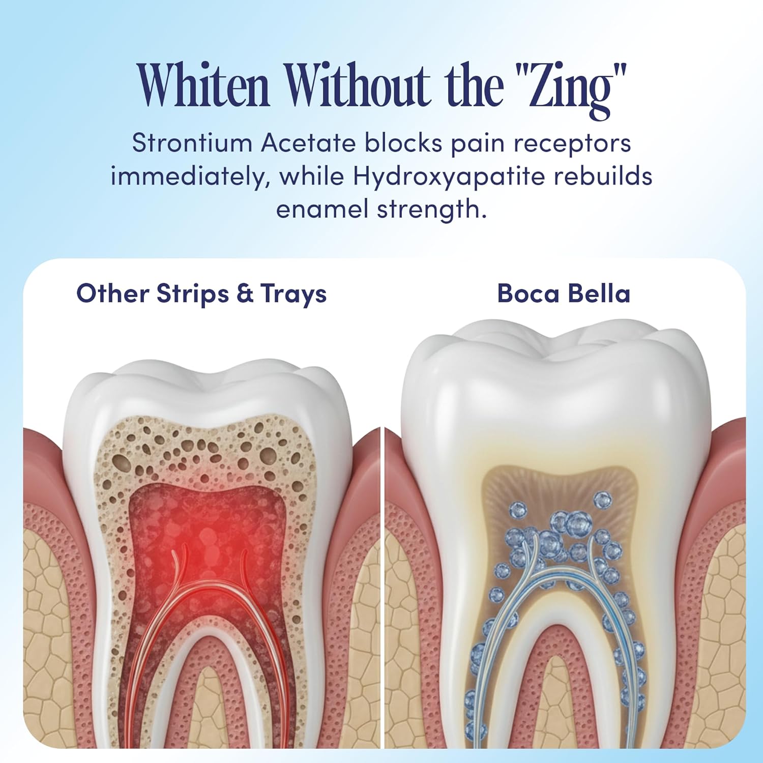 • 𝐔𝐩 𝐭𝐨 𝟐𝟑 𝐒𝐡𝐚𝐝𝐞𝐬 𝐖𝐡𝐢𝐭𝐞𝐫, 𝐂𝐥𝐢𝐧𝐢𝐜𝐚𝐥𝐥𝐲 𝐁𝐚𝐜𝐤𝐞𝐝: Whiten like a pro from home. Clinically tested to whiten teeth by up to 23 shades in 10 days, Boca Bella U-Wraps deliver fast, visible results without the harsh peroxide sting.