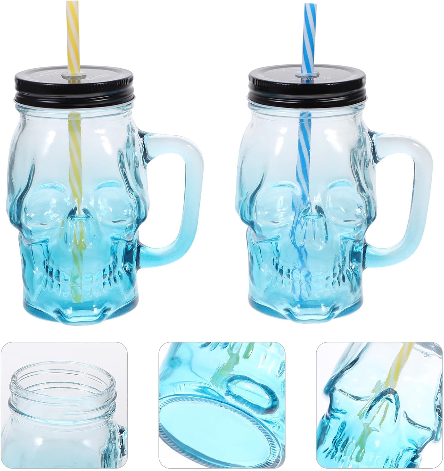 Package List 2 x beer glass (500ML) Characteristics -Product Info:Skull glass cup - Material: Glass. - Color: Gradient Blue. - Note: Lid and straw is random color. - workmanship with cover and straw mouth for multi-purpose use halloween reusable cups. - Creative shape drink cup, beautiful appearance and fine workmanship halloween skull cup. - Great for Halloween, holidays or just a spooky drink halloween cups reusable. - Also a nice decoration for Halloween halloween spooky cups. - A great gift for your friend and family halloween cups with lids.Goods Informationhalloween skull glasses cups Made of material, and practical, make you use it more conveniently.halloween skull cups Perfect for home use.halloween cups with lids This creative beer glass with fine and appearance, add more color and fun to your glass cup.halloween drinking glasses Skull design make the beverage more popular