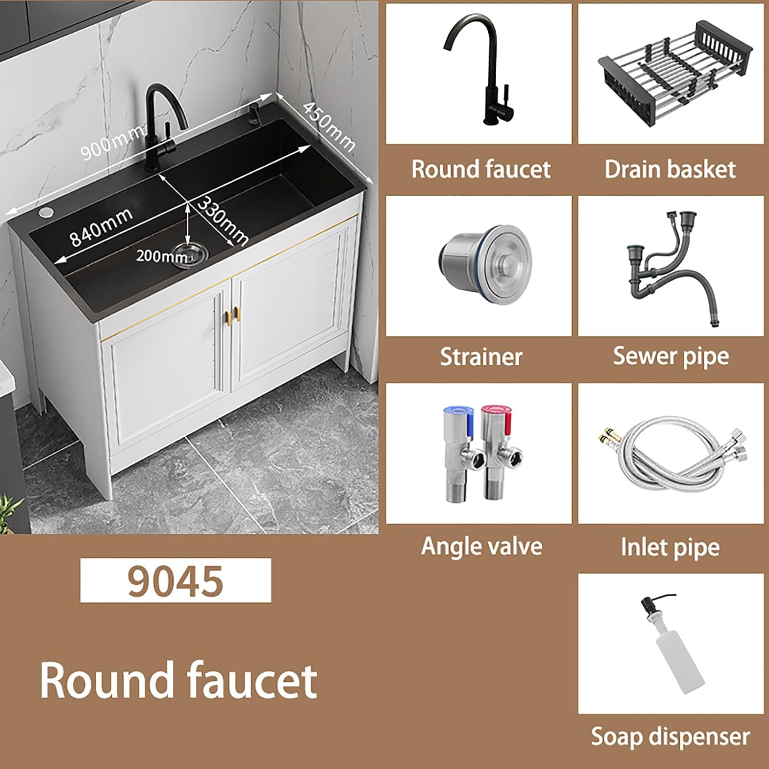 Portable Camping Sink: utility laundry sink with cabinet, freestanding kitchen sink. Made of premium stainless steel, our sink is designed to stand the test of time. It resists corrosion, rust and staining, retaining its elegant appearance even after years of use. The integrated draining unit is a game changer, ensuring fast and efficient water drainage. No more dealing with annoying puddles in your sink; it keeps the area clean and dry, improving your overall workspace. Our sink comes with built-in storage shelves that provide generous space to store your kitchen essentials, bathroom supplies, or laundry items. The spacious cabinet under the sink provides ample storage space. The sink comes with a tap that provides easy access to water for various tasks. Our utility sink is designed for hassle-free installation, and all necessary components and accessories are included. It is constructed of stainless steel and is the perfect wash and prep sink for use in any kitchen, bar, restaurant, laundry room, concierge room, cafeteria, garden, indoor, outdoor, garage or other commercial environment. Freestanding commercial sink, good size stainless steel sink set, prep and utility sink set easy to maintain and clean. Specification: Material: stainless steel Panel size: 55 x 45 x 80 cm, 60 x 45 x 80 cm, 65 x 45 x 80 cm, 68 x 45 x 80 cm, 72 x 45 x 80 cm, 72 x 45 x 45 x 12.5 UK Child In, 75 x 45 x 80 cm, 80 x 45 x 80 cm, 90 x 45 x 80 cm, 100 x 45 x 80 cm Product process: wire drawing process Product material: non-magnetic stainless steel Package includes: Sink set Manual measurement, please Please allow 1-3 cm error, thank you. After-sales service: if you have any questions or dom