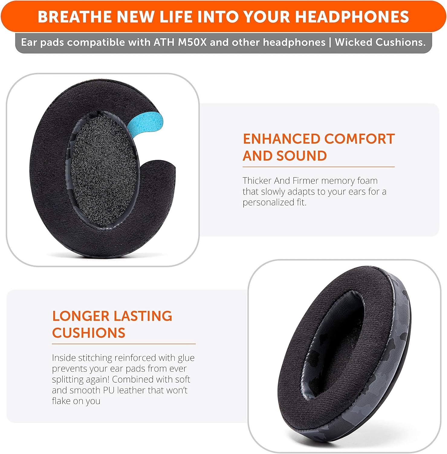 These Earpads were made to be compatible with: ATH M50X / M50 / M50XBT ATH M40 / M40X / M40FS ATH M30 / M30X ATH M20X ATH MSR-7 STEELSERIES ARCTIS 3 / 5 / 7 / PRO / PRO WIRELESS HyperX CLOUD 1 / CLOUD 2 / CLOUD ALPHA / CLOUD STINGER / CLOUD FLIGHT TURTLE BEACH STEALTH 300 / 400 / 500 / 600 / 700 / X12 / ATLAS MONOPRICE 8323 The full package contains: - Made from extra-thick, comfort-fit memory foam - Includes (2) ear pads - enhances sound performance & quality - No-tool installation in less than 5 minutes - Pads equipped with inside stitching reinforced with glue