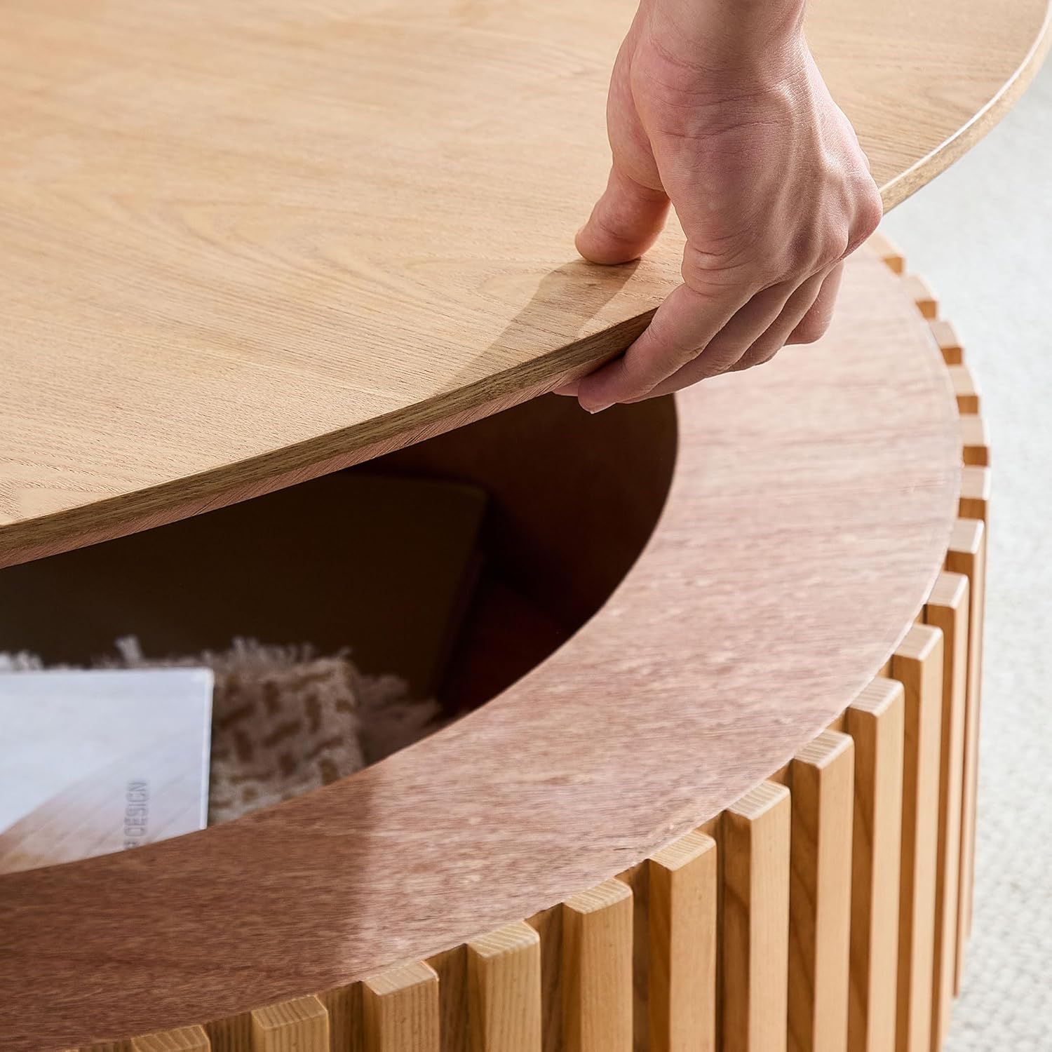 | Color | 31.49" Round Coffee Table With Storage, Oak |