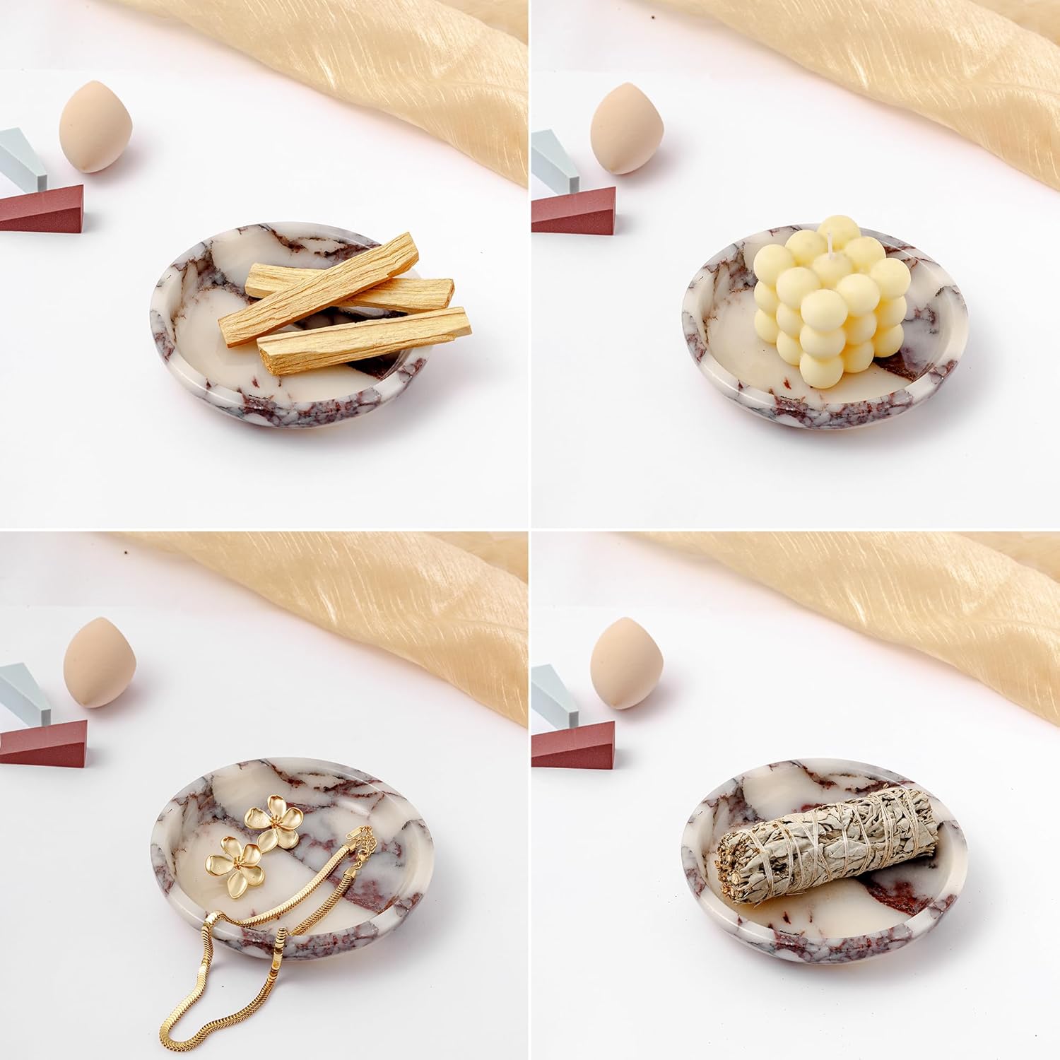 SIZE: 5.5”Dia x 1”H COLOR: Natural Calacatta Viola PurpleMATERIAL: Italy Calacatta Viola Marble NOTES: 1. It’s NORMAL that tiny holes and small internal crack appears due to natural stone features. 2. The marble textures will be different from each other and no two will be exactly the same. Please note before purchasing. 3. Use water or damp clothes to wash and clean. 4.If you have any problem while your purchase, please feel free to contact us. WORHE is developing in manufactory of Natural Marble home décor, aiming at giving you elegant and comfy home experience. All quality marble we use is radiation free, waterproof and fireproof. Please look forward to our marble home product.