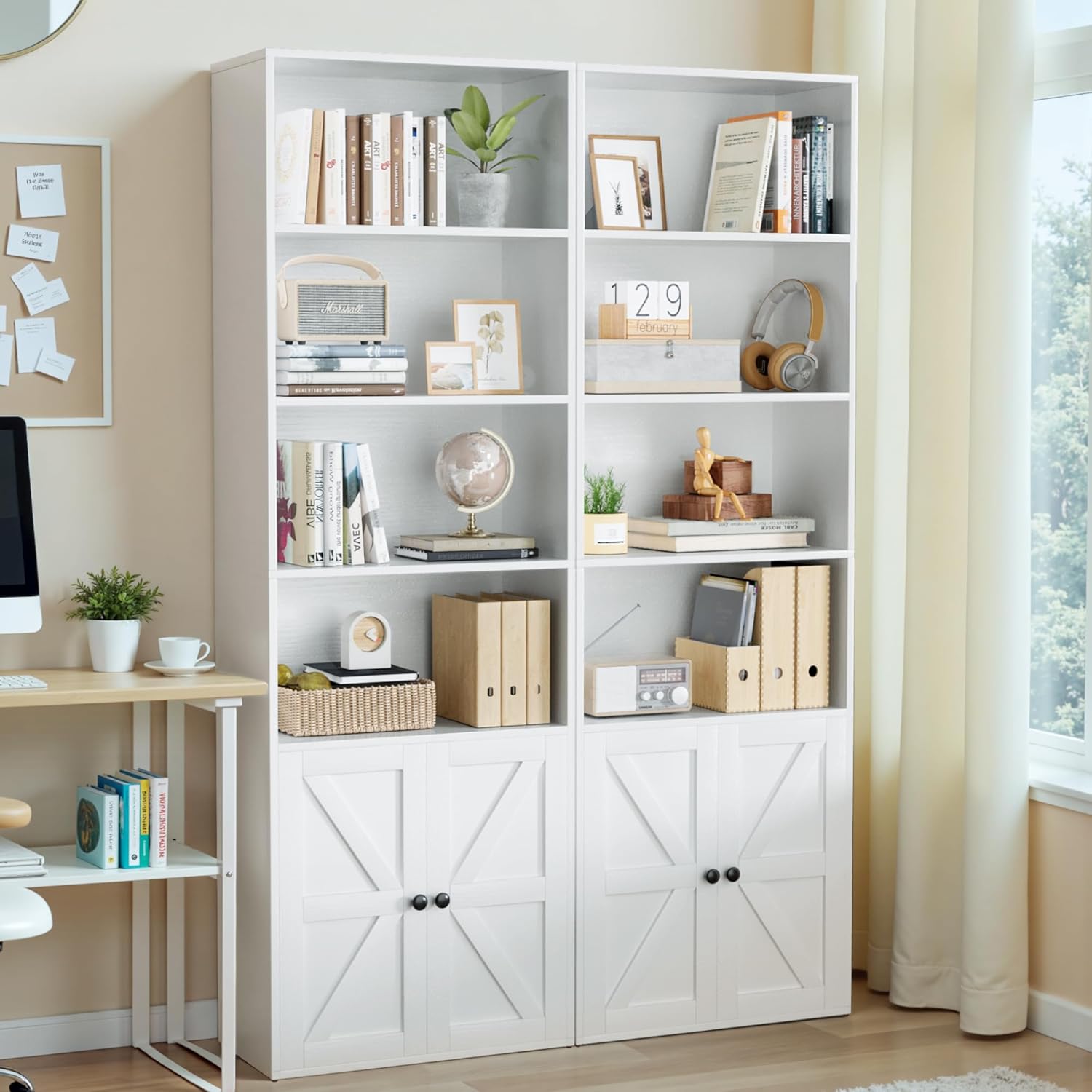 Are you tired of study room being overwhelmed by countless books? Do you frequently find yourself frustrated by the insufficient storage space in your home? If so, our farmhouse-inspired bookcase is just what you need!.The YESHOMY bookcase boasts 4 open shelves and 2 concealed shelves with doors, ensuring it meets all your storage requirements with ease.!Product Details: -Adjustable dividers for storage cabinets: adjustable according to the size of the items to be stored-Foot pads: to prevent scratches and slips on the floor-Anti-tipping device: more stable during useSpecification: -Material:wood -Color: Black/Grey/Brown/White -Size:72 H*22 W*12 D inch -Style: Farmhouse Style -Structure: rectangular structure