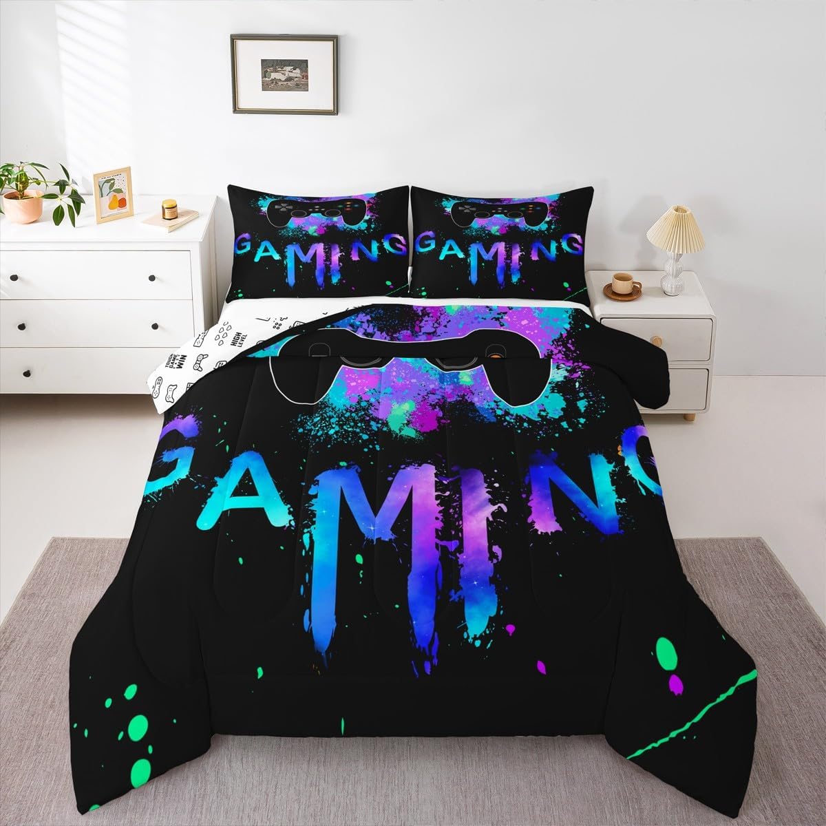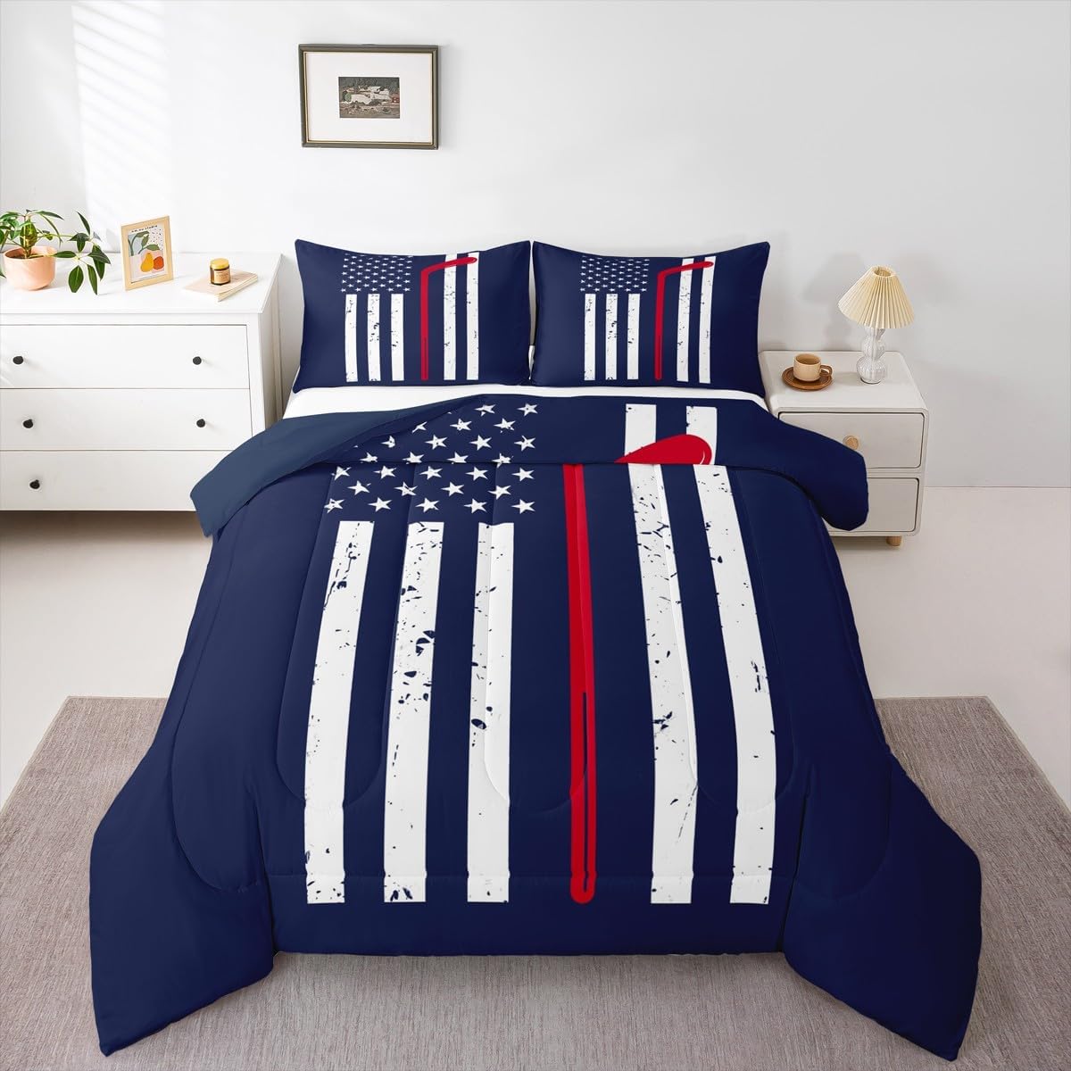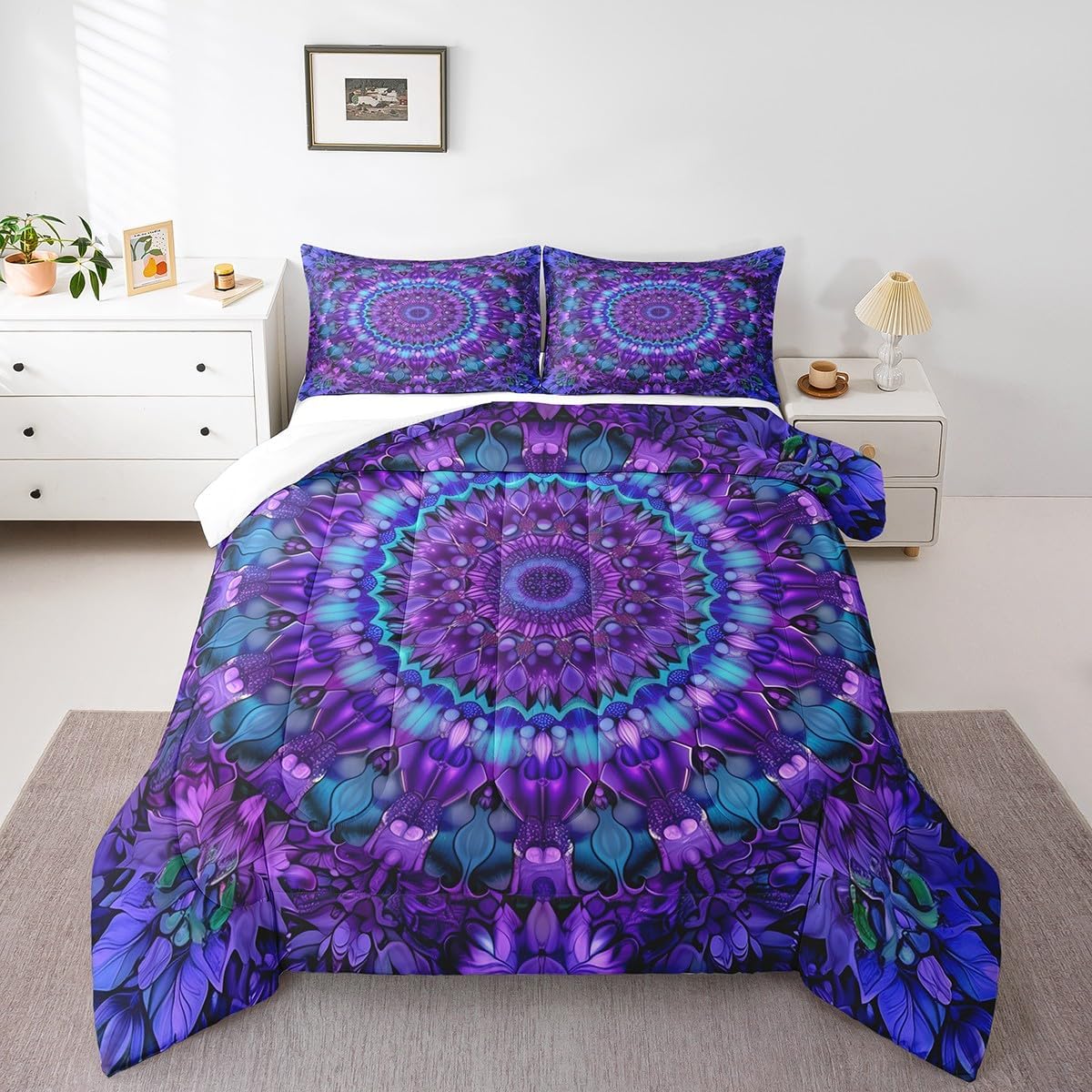 Welcome to our store. We have specialized in home textile for many years. We are committed to providing customers with comfortable products. Size Information Twin size: 1 Down Comforter (68"W x 90"L) and 1 Quilted Pillowcase (30"W x 20"L). Full size: 1 Down Comforter (79"W x 90"L) and 2 Quilted Pillowcases (30"W x 20"L). Queen size: 1 Down Comforter (90"W x 90"L) and 2 Quilted Pillowcases (30"W x 20"L). King size: 1 Down Comforter (104"W x 90"L) and 2 Quilted Pillowcases (36"W x 20"L). Versatility We have many kinds of styles for you to choose. You can easily find a product that suits the style of your room. The item is not only fits your home (bedroom, guest room, living room, etc) or RV, but also a present for holidays or anniversaries (Christmas, New Year, Halloween, Thanksgiving day, birthday, etc) for people who you love (your families, friends, relatives, boyfriend,girlfriend). Modern Design The luxury aesthetic comforter set is made by reactive printing and dyeing process. The pattern is clear, the color is lasting and bright, which will not fade after repeated washing. No harmful chemicals or dye substance. Personalized As a manufacturer of digital printed home textiles, we follow current trends and bring you the latest and stylish home textile products. The item will make the room decorated in exquisite taste. We sincerely hope you'll love the bed set.
