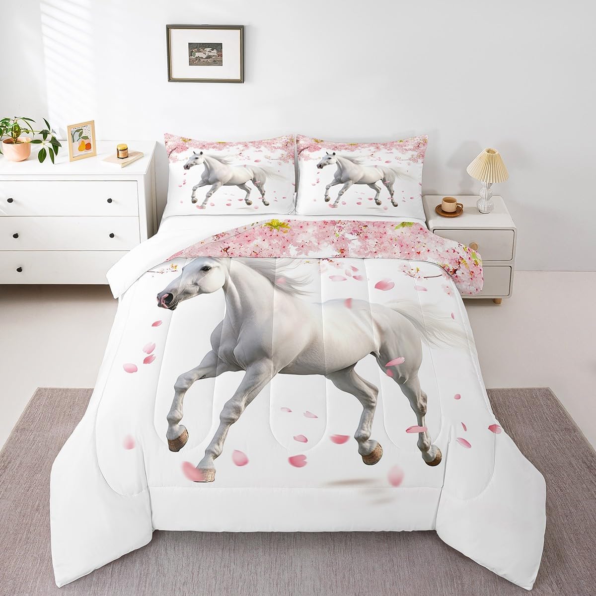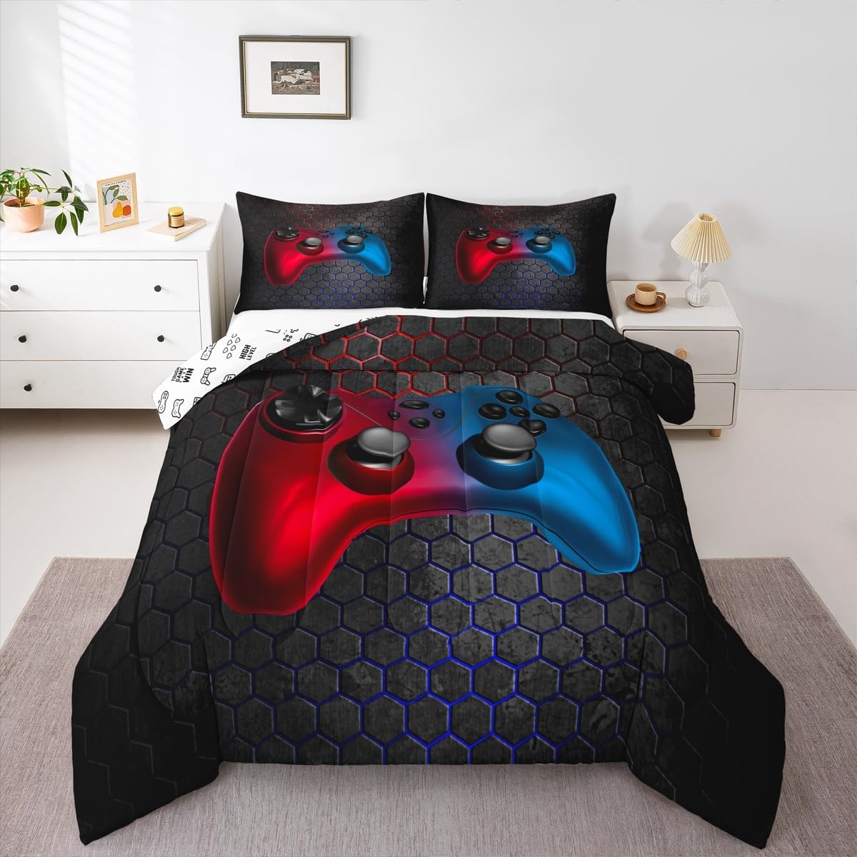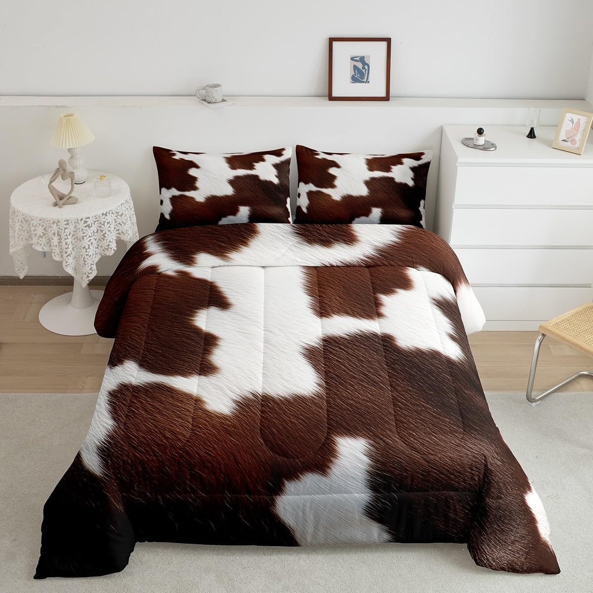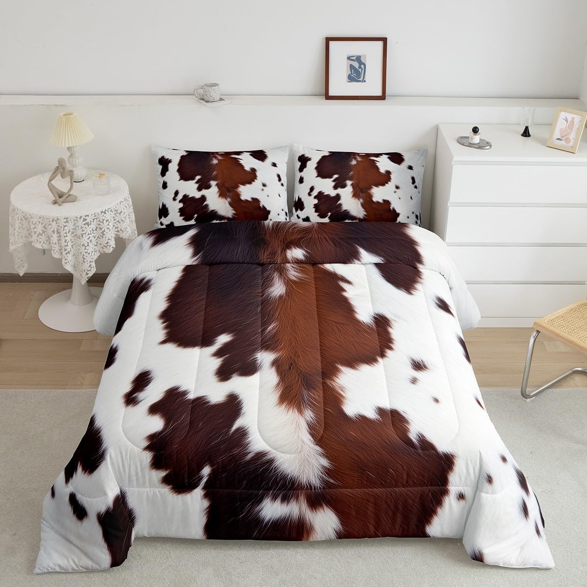 Welcome to our store. We have specialized in home textile for many years. We are committed to providing customers with comfortable products. Size Information Twin size: 1 Down Comforter (68"W x 90"L) and 1 Quilted Pillowcase (30"W x 20"L). Full size: 1 Down Comforter (79"W x 90"L) and 2 Quilted Pillowcases (30"W x 20"L). Queen size: 1 Down Comforter (90"W x 90"L) and 2 Quilted Pillowcases (30"W x 20"L). King size: 1 Down Comforter (104"W x 90"L) and 2 Quilted Pillowcases (36"W x 20"L). Versatility We have many kinds of styles for you to choose. You can easily find a product that suits the style of your room. The item is not only fits your home (bedroom, guest room, living room, etc) or RV, but also a present for holidays or anniversaries (Christmas, New Year, Halloween, Thanksgiving day, birthday, etc) for people who you love (your families, friends, relatives, boyfriend,girlfriend). Modern Design The luxury aesthetic comforter set is made by reactive printing and dyeing process. The pattern is clear, the color is lasting and bright, which will not fade after repeated washing. No harmful chemicals or dye substance. Personalized As a manufacturer of digital printed home textiles, we follow current trends and bring you the latest and stylish home textile products. The item will make the room decorated in exquisite taste. We sincerely hope you'll love the bed set.
