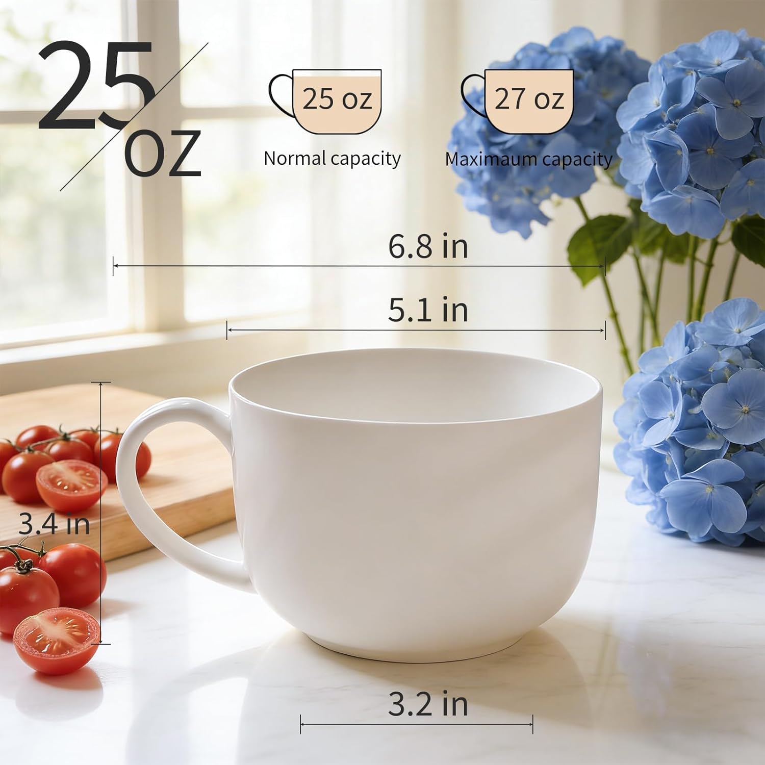 Large Bone China Mugs, 25 OZ Extra Breakfast Cups, White Oversized Coffee Mugs for Salad, Oatmeal, Yoghurt, Latte, Milk, Microwavable Safe Easy to Clean