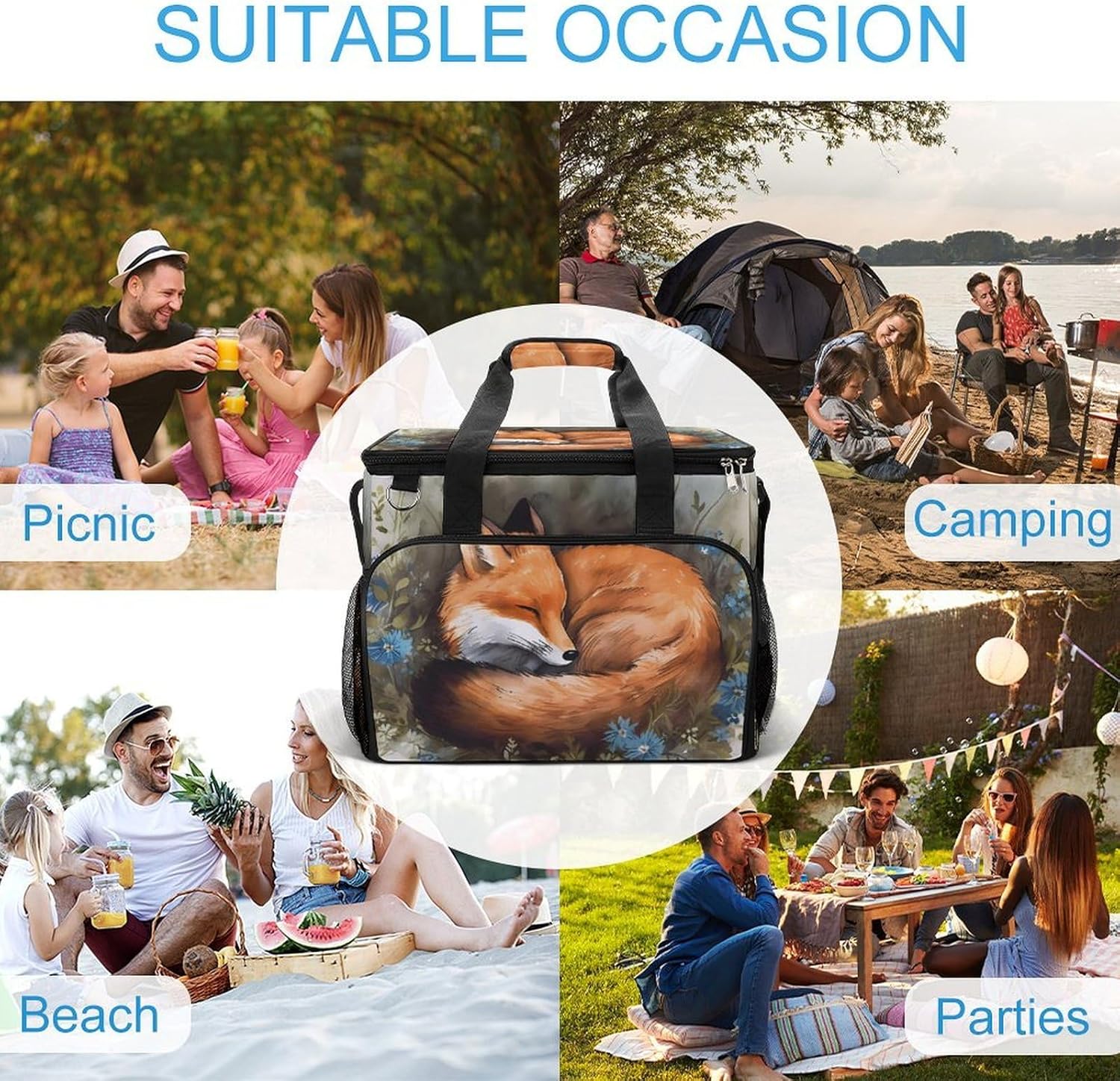 Take Your Meals Anywhere with A Sleeping Fox Grocery BagsFood Container Carrier Oxford Fabric Picnic Bag Heat Retaining Food Bag Camping Cooler BBQ Accessories Cute Picnic Bag with Pockets Insulated Food Bag for Work Insulated Lunch Tote Bag Camping BagTemperature Control That WorksThe upgraded aluminum foil lining creates an effective thermal barrier. Your drinks stay refreshingly cold, and your hot dishes maintain their warmth for hours. No more lukewarm meals during outdoor outings.Thoughtful Storage DesignTwo side mesh pockets - Perfect for water bottles or umbrellasFront zippered pocket - Keeps keys, phone, or condiments organizedInternal mesh pocket - Stores utensils, napkins, and small essentialsMain compartment - Spacious enough for food containers and snacksBuilt for Daily AdventuresConstructed from high-density oxford fabric with reinforced stitching at stress points. The double zippers are sturdy and smooth-operating. Reinforced handles let you carry heavy loads with confidence.Carry Your WayHandles for quick grabbingStands upright for easy packing and accessPerfect For:Picnics in the parkBeach days and pool partiesCamping and hiking tripsOutdoor concerts and festivalsDaily work lunchesGym and fitness classesRoad trips and travelGrocery shoppingSpecifications:Dimensions: 15.4 x 11.8 x 11.8 inchesMaterial: High-density Oxford fabricLining: Aluminum foil (insulated)Closure: Sturdy double zippersPockets: 2 side mesh, 1 front zipper, 1 internal meshCare: Hand wash or machine wash, do not bleachNote: Food containers and utensils shown in images are not included.
